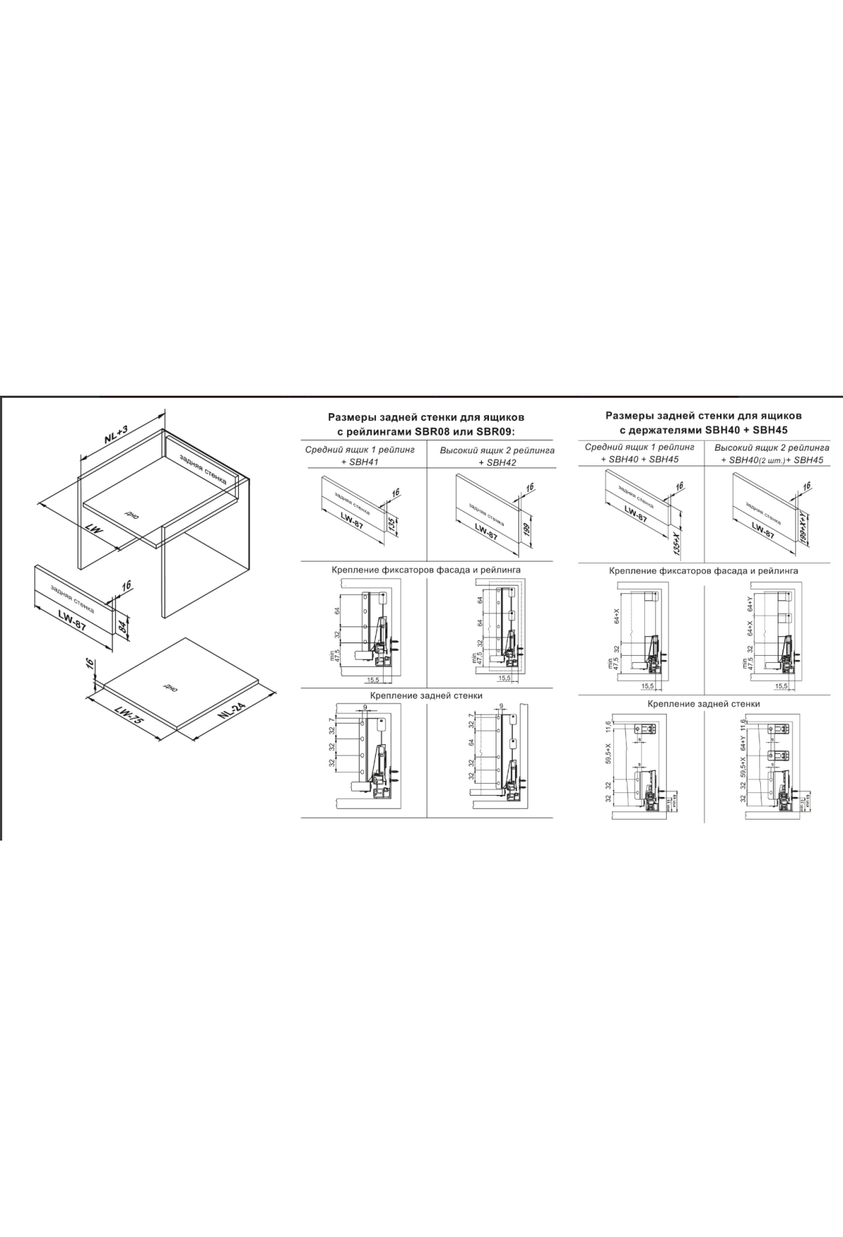 SBR08 – круглый рейлинг, предназначенный для формирования выдвижных мебельных ящиков разной высоты. Применяется с держателями рейлинга SBH40 и держателями задней стенки SBH45 для формирования выдвижного мебельного ящика любой высоты, а также с держателями задней стенки SBH41 и SBH42 для формирования средних и высоких выдвижных ящиков.