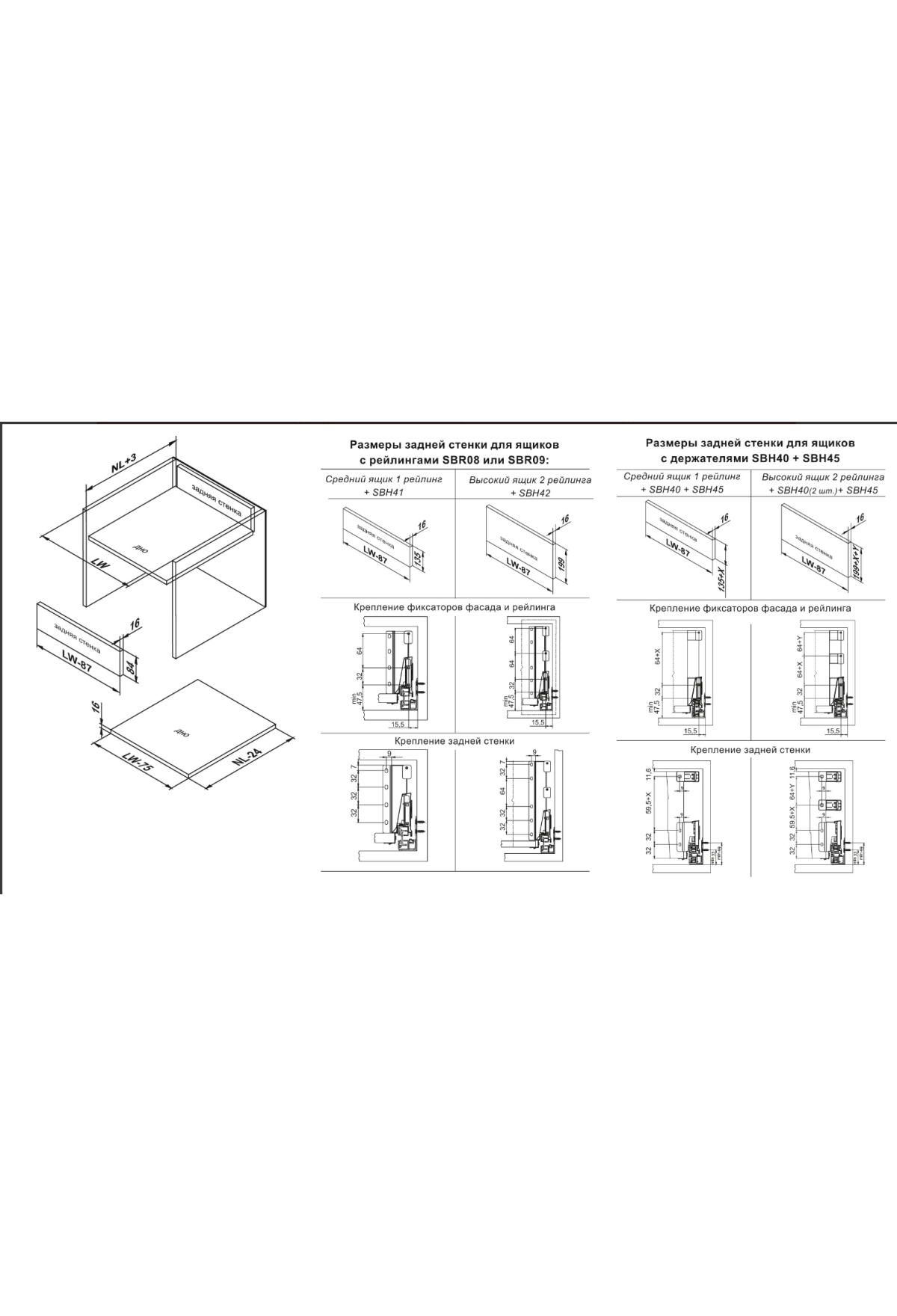 SBR09 – прямоугольный рейлинг, предназначенный для формирования выдвижных мебельных ящиков. Применяется с держателями рейлинга SBH40 и держателями задней стенки SBH45 для формирования выдвижного мебельного ящика любой высоты, а также с держателями задней стенки SBH41 и SBH42 для формирования средних и высоких выдвижных ящиков.