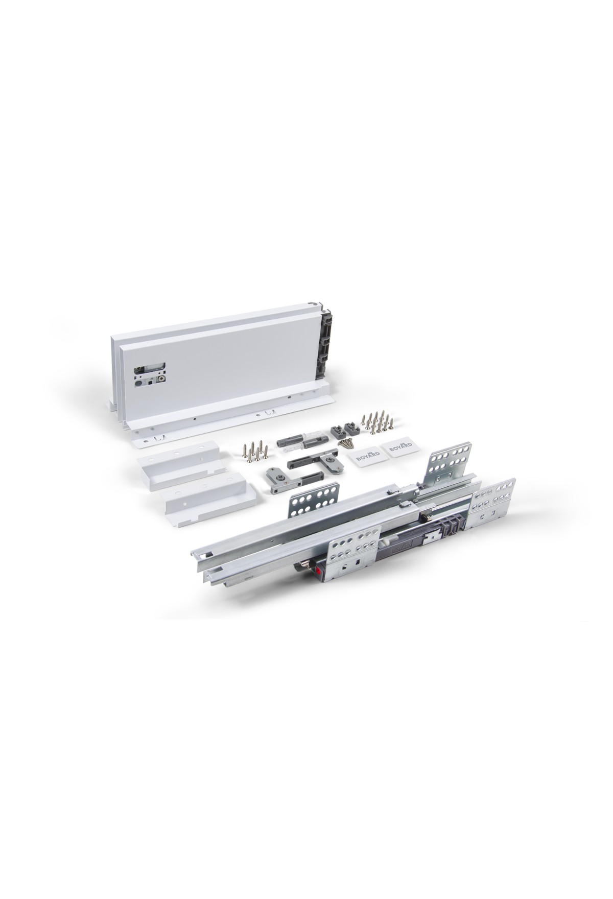 СТАРТ PUSH SB29 — комплект систем выдвижения для сборки выдвижного мебельного ящика с прямыми боковинами средней высоты с открытием от нажатия для мебели без ручек.