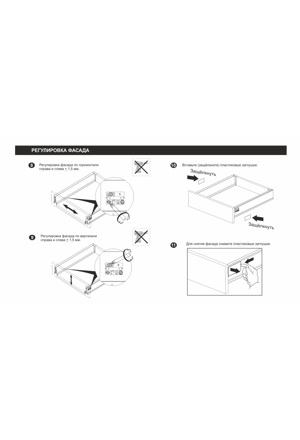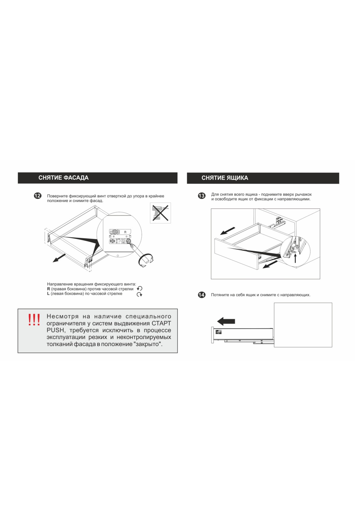 Модель эксклюзивно имеет специальный ограничитель механизма PUSH, что позволит избежать поломки системы выдвижения в процессе установки ящика на направляющие с прилагаемым усилием. Ограничитель также выполняет функцию упора для вкладных ящиков.