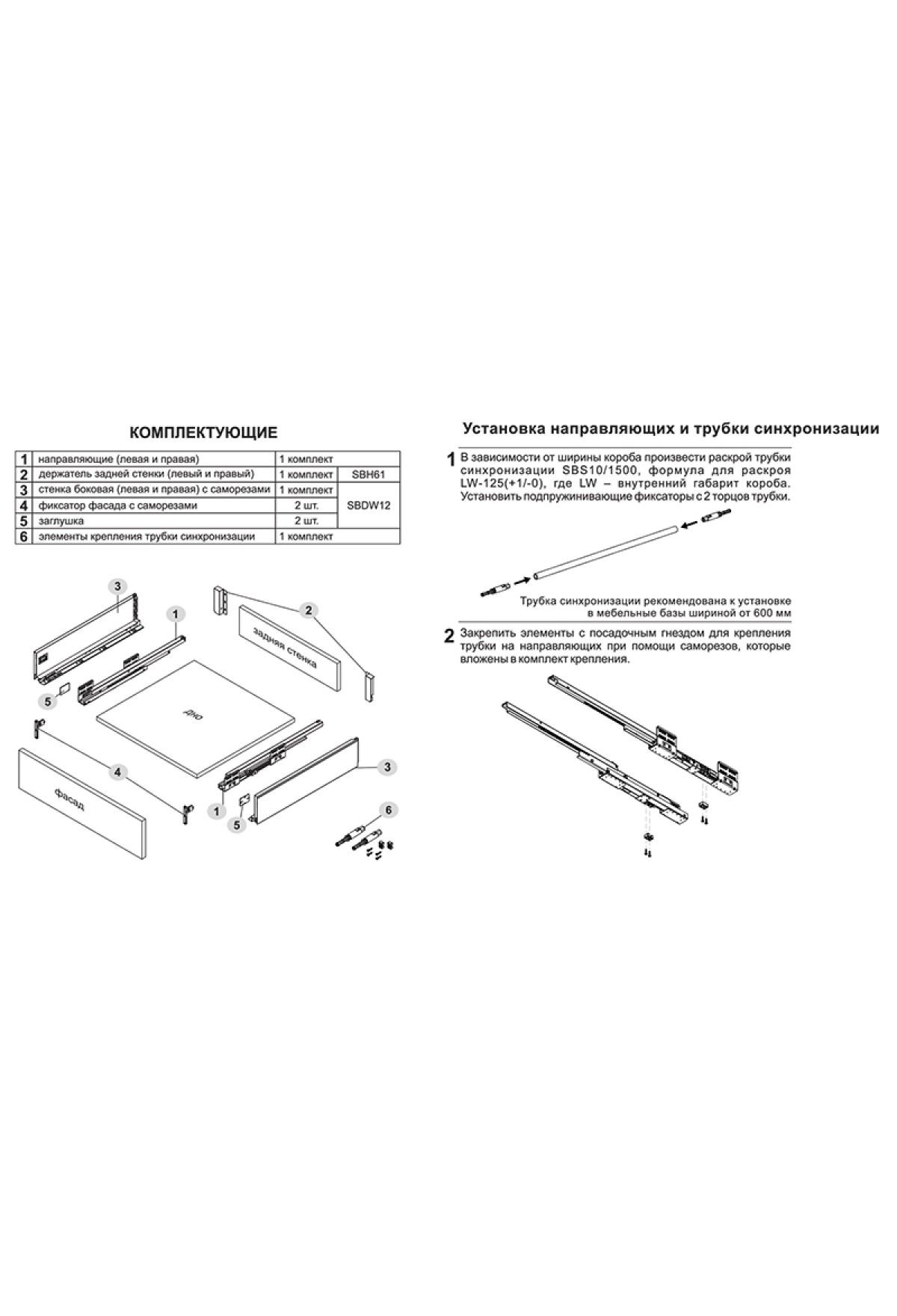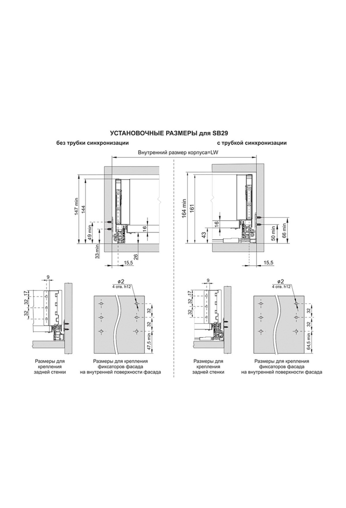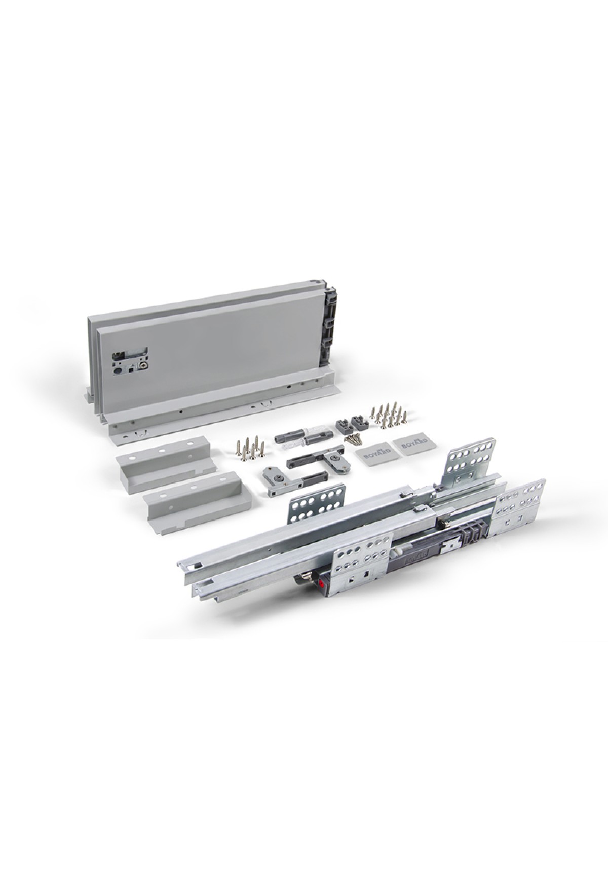 СТАРТ PUSH SB29 — комплект систем выдвижения для сборки выдвижного мебельного ящика с прямыми боковинами средней высоты с открытием от нажатия для мебели без ручек.