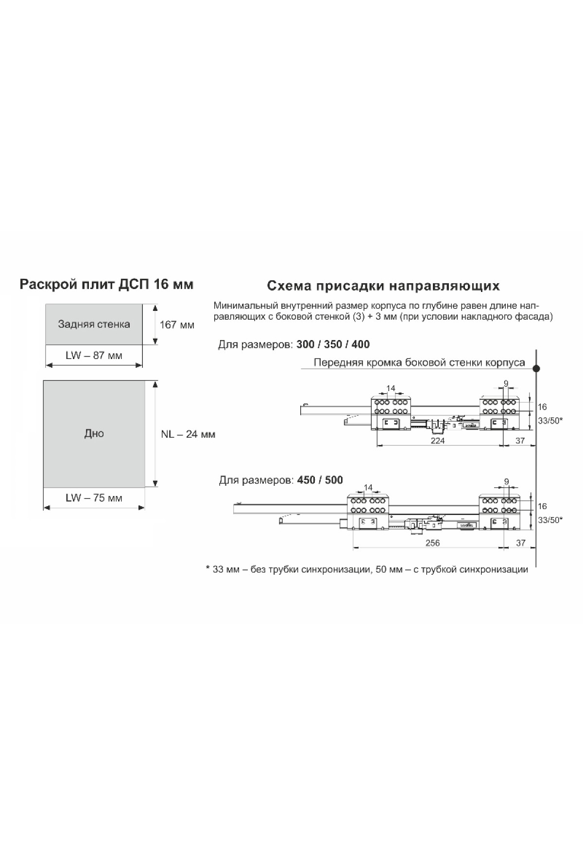 Тип конструкции: Системы выдвижения с двойными металлическими боковинами