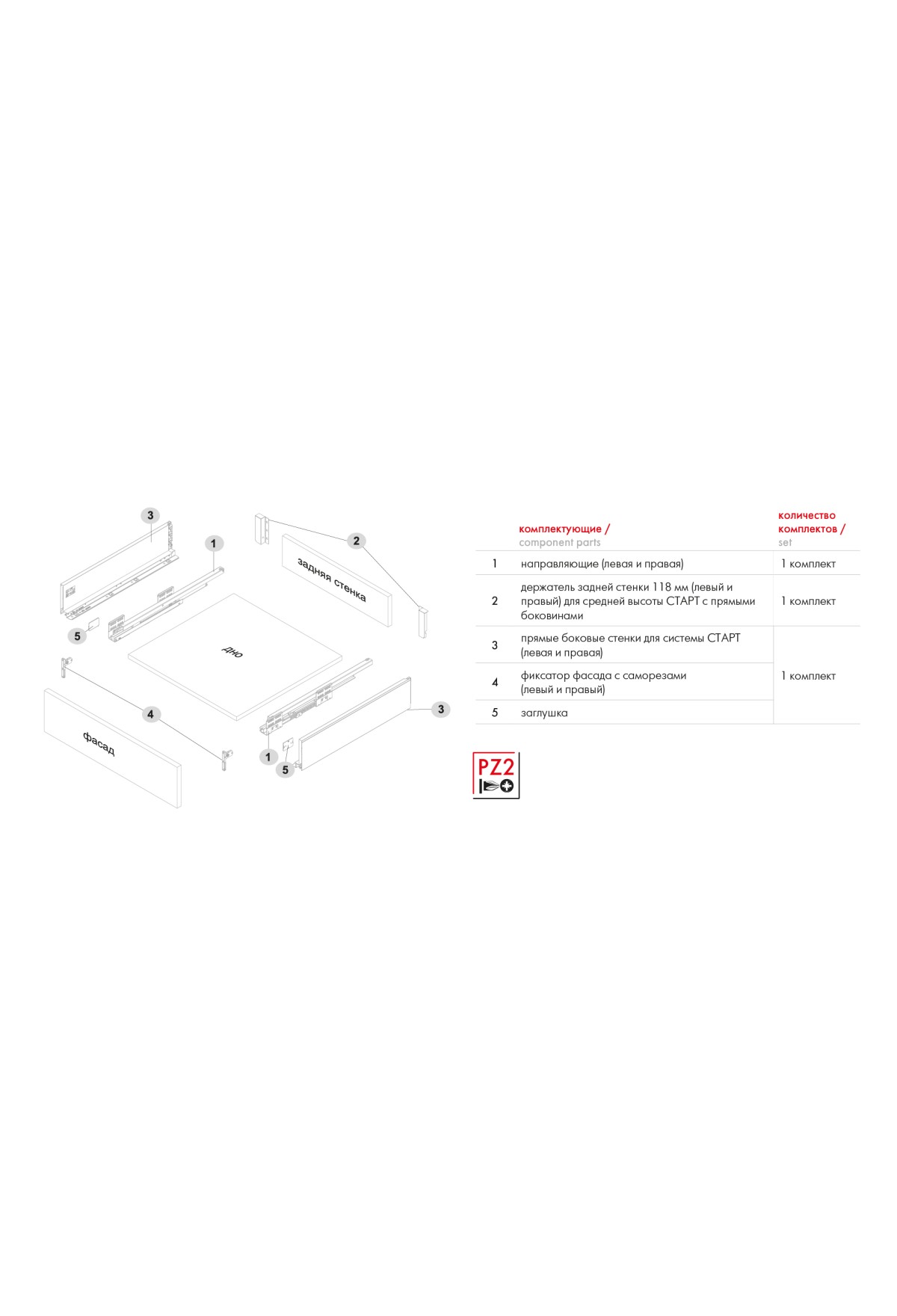 Вид комплектации ящика | Комплект ящика |