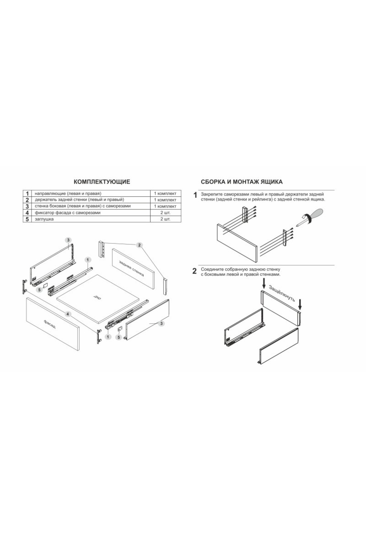 Направляющие (Выдвижные ящики) | В комплекте |