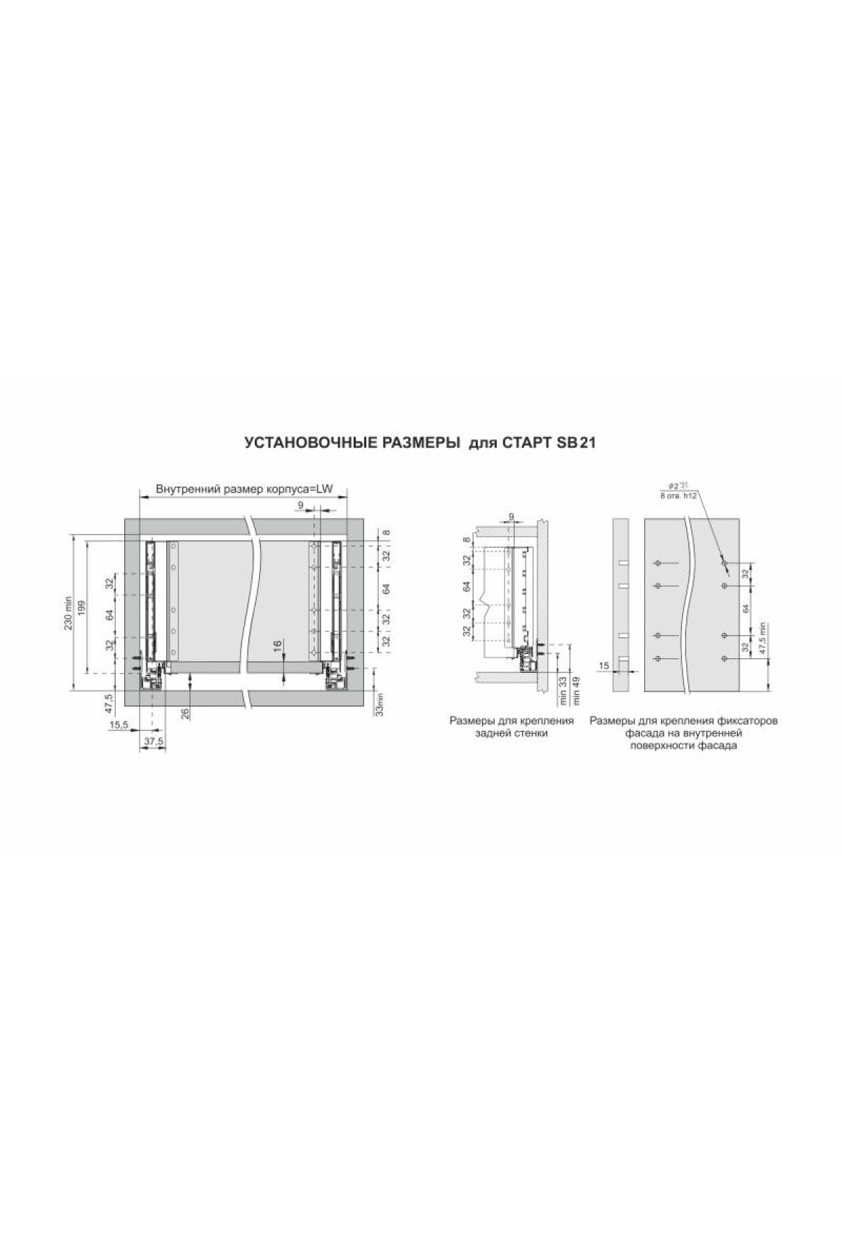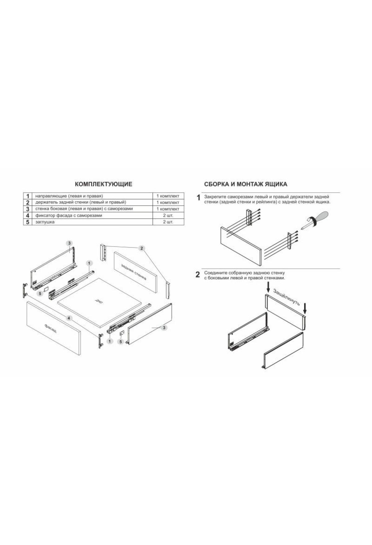 Для сборки выдвижного мебельного ящика на базе СТАРТ SOFT ЭКСТРА SB21 необходимо самостоятельно изготовить фасад, заднюю стенку и дно ящика.