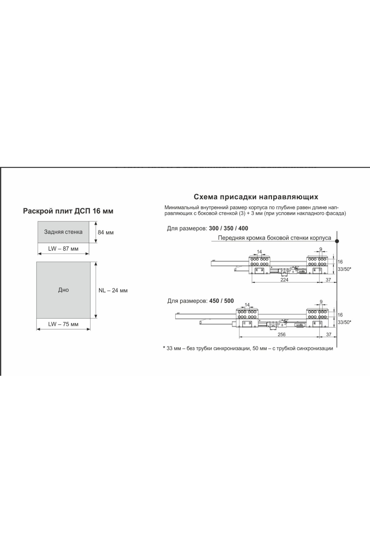 Тип конструкции: Системы выдвижения с двойными металлическими боковинами