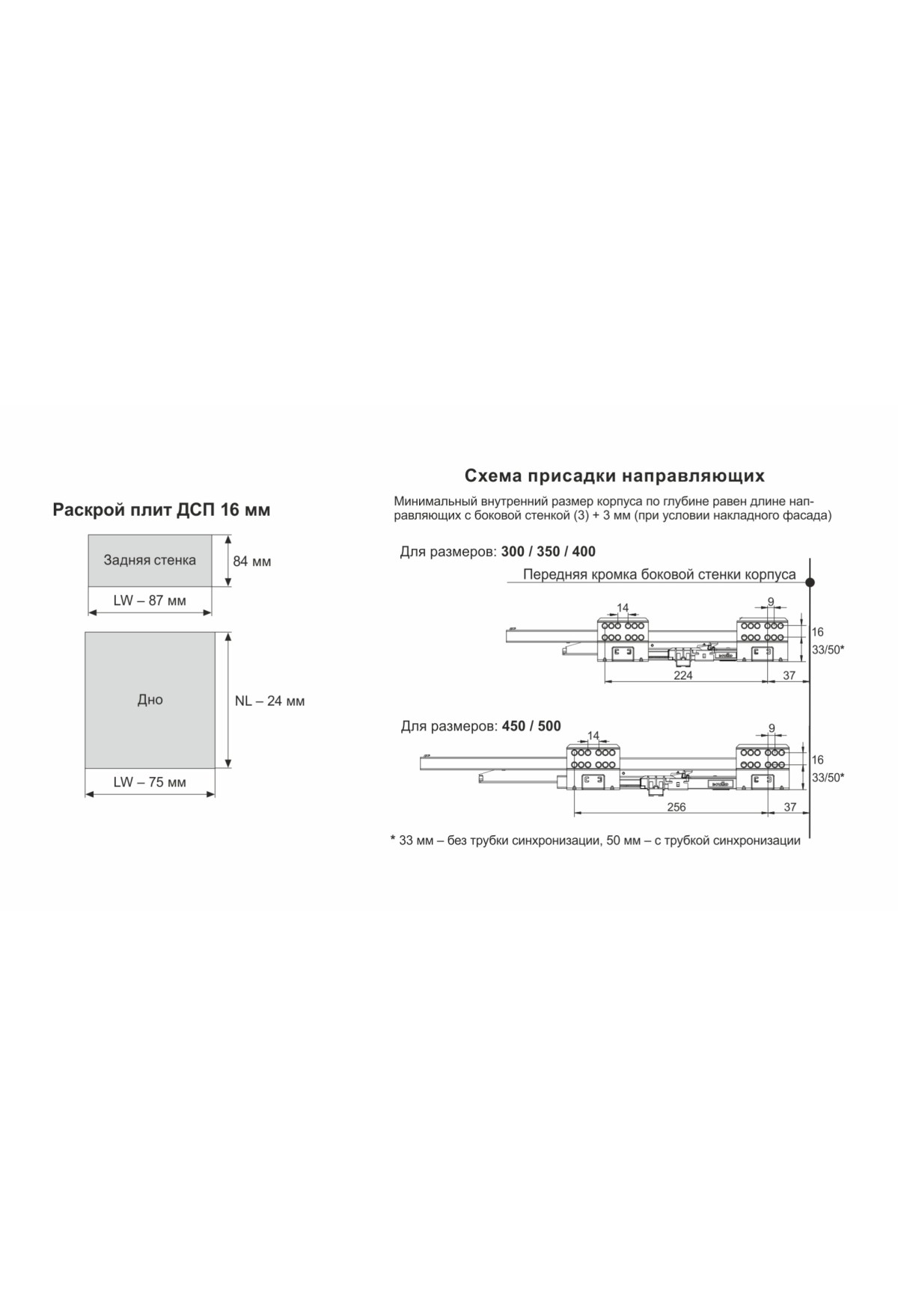 Тип конструкции: Системы выдвижения с двойными металлическими боковинами