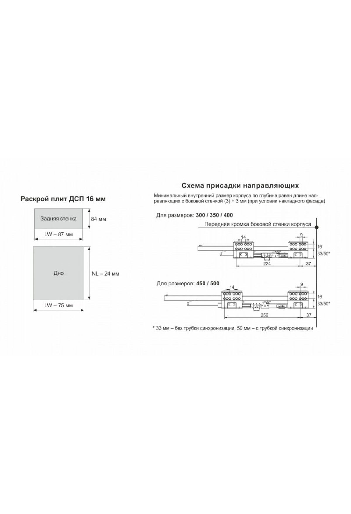 Длина, мм (Система выдвижения) | 500 |