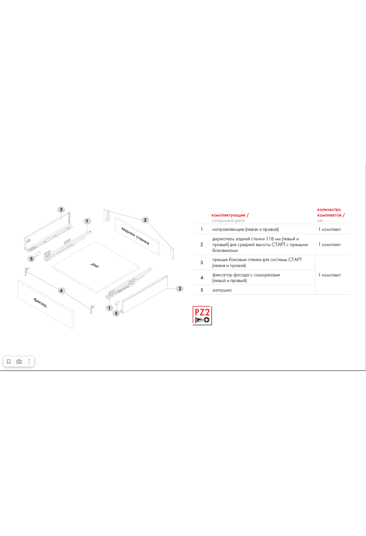 тип товара (общий) | Выдвижной ящик с тонкими боковинами |