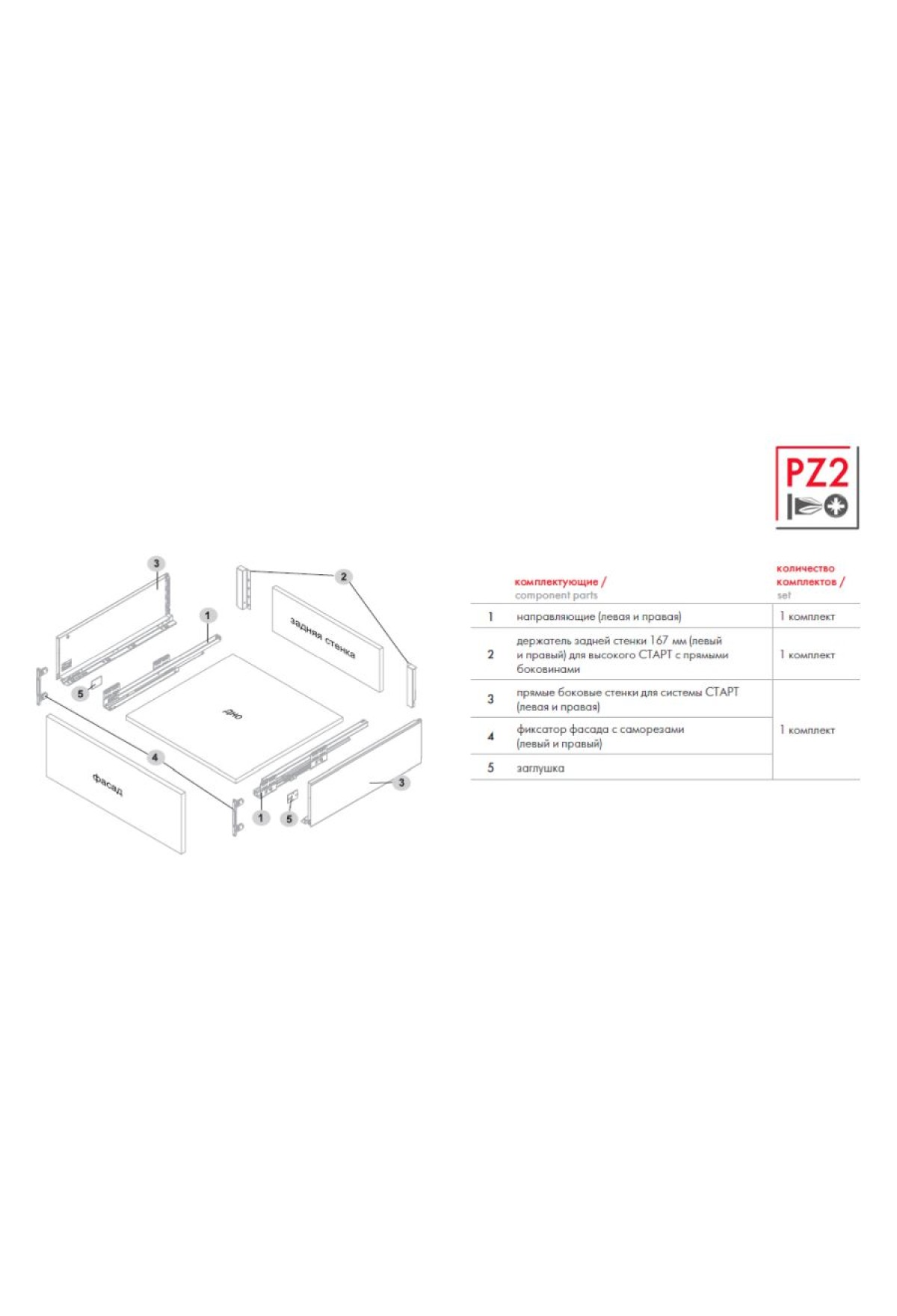 Вид комплектации ящика | Комплект ящика |