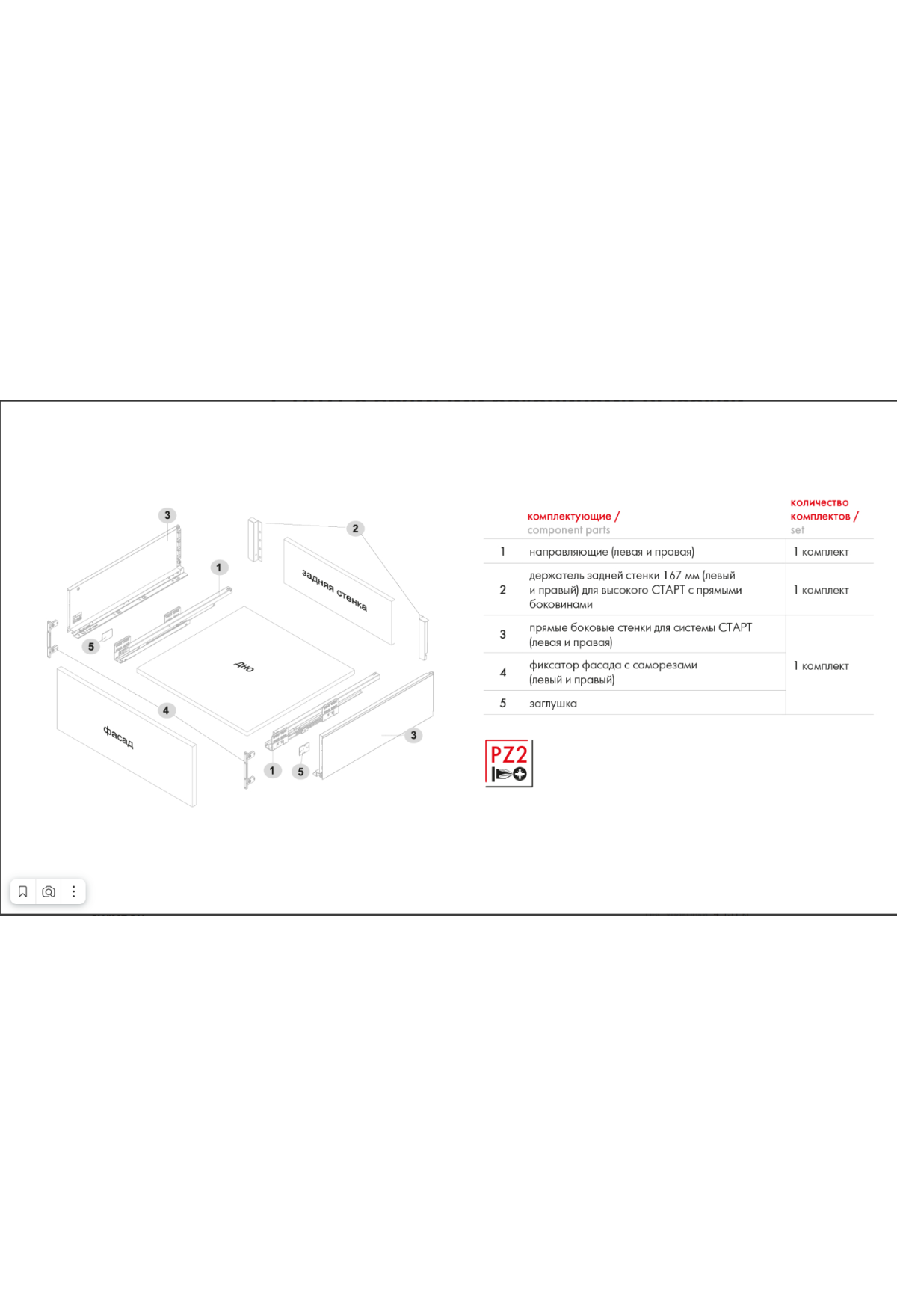 тип товара (общий) | Выдвижной ящик с тонкими боковинами |