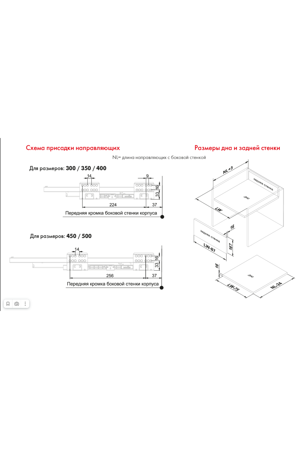 тип товара (общий) | Выдвижной ящик с тонкими боковинами |