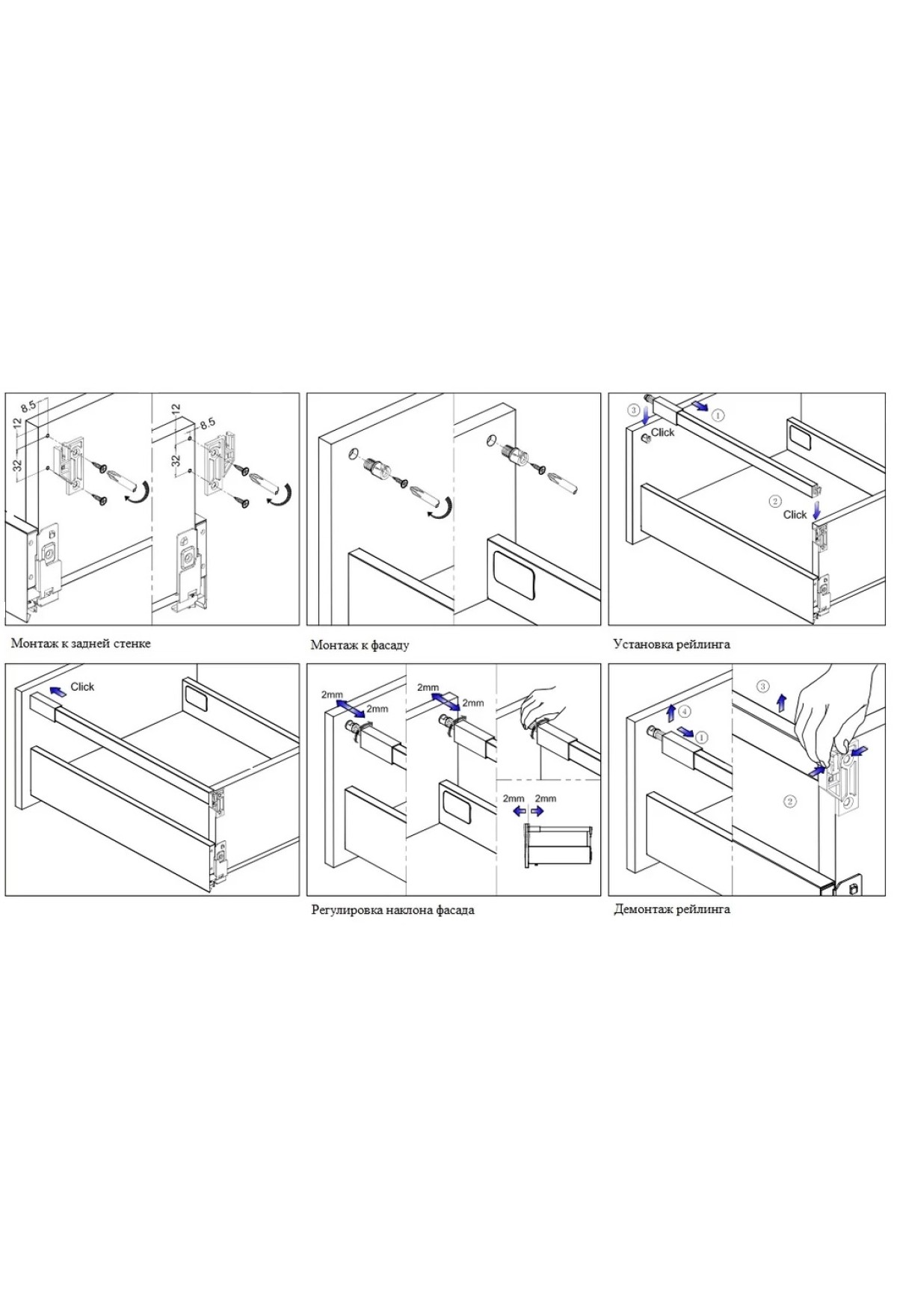 HB (min) – номинальная высота задней стенки для конкретной высоты ящика. HB (min) для ящика с боковинами высотой 89 мм = 59 мм / для ящика с боковинами высотой 121 мм = 91 мм / для ящика с боковинами высотой 185 мм = 155 мм / для ящика с боковинами высотой 249 мм = 219 мм;