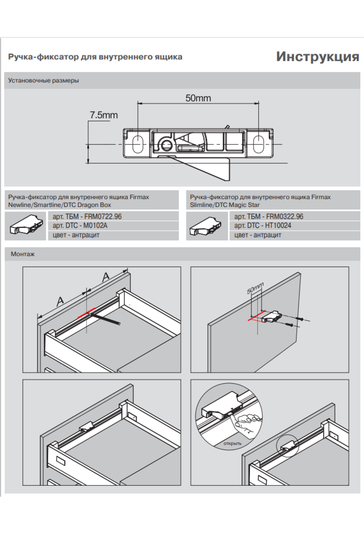 - Firmax Slimline ручка-фиксатор для внутреннего ящика,антрацит/FRM0322.96