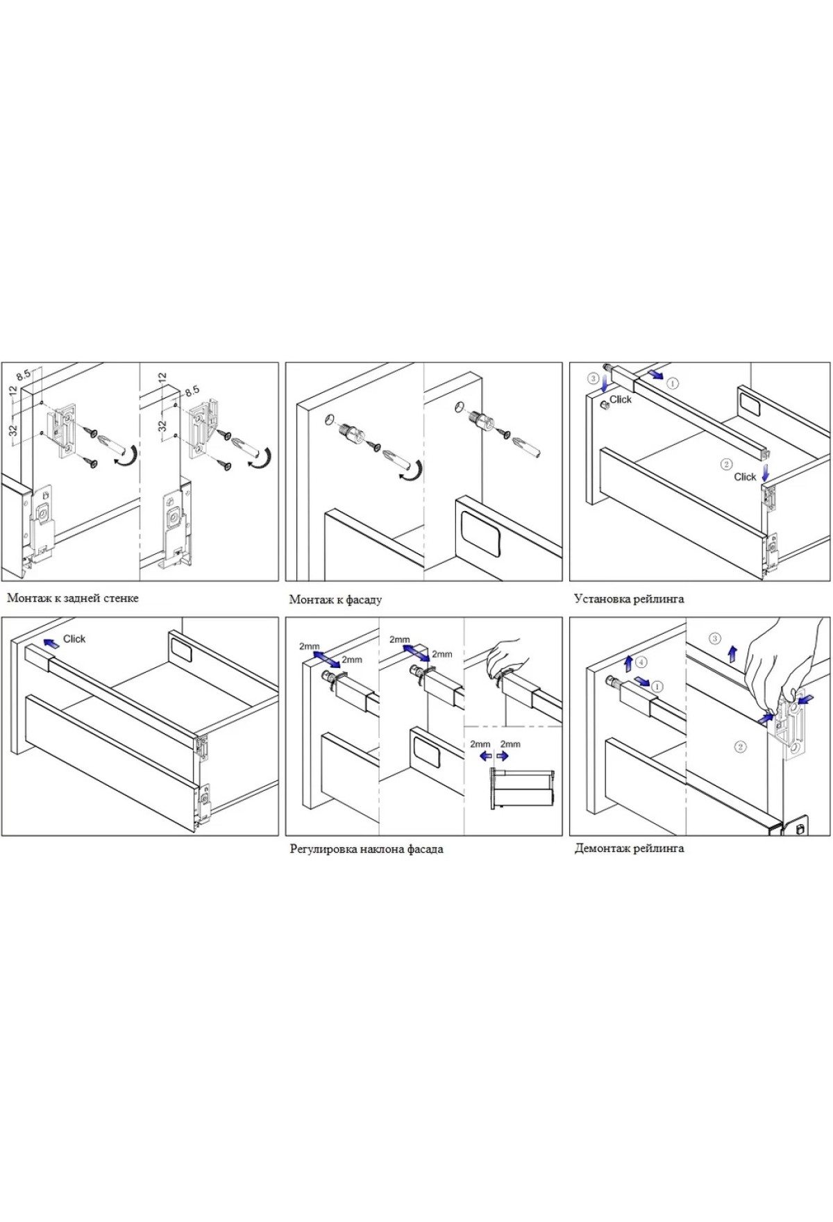 - комплект металлических двойных боковин для увеличения высоты боковины ящика;