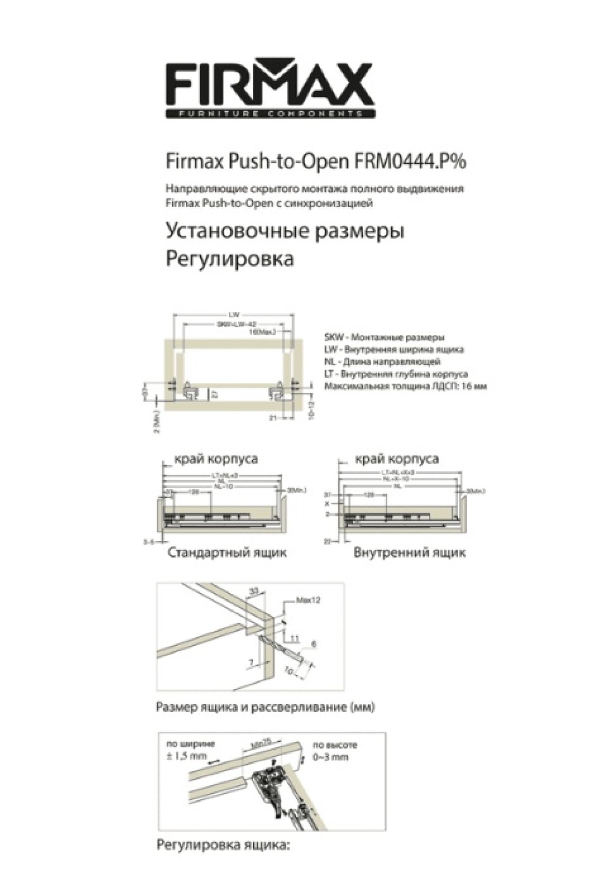 Регулировка фасада по ширине: +/- 1,5 мм
