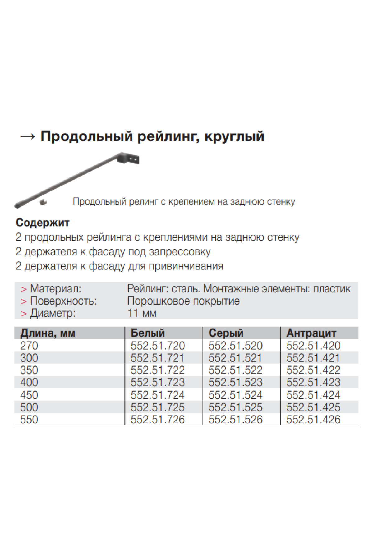 - Комплект продольных круглых рейлингов для выдвижных ящиков Matrix Box 450мм белый 552.51.724 Hafele