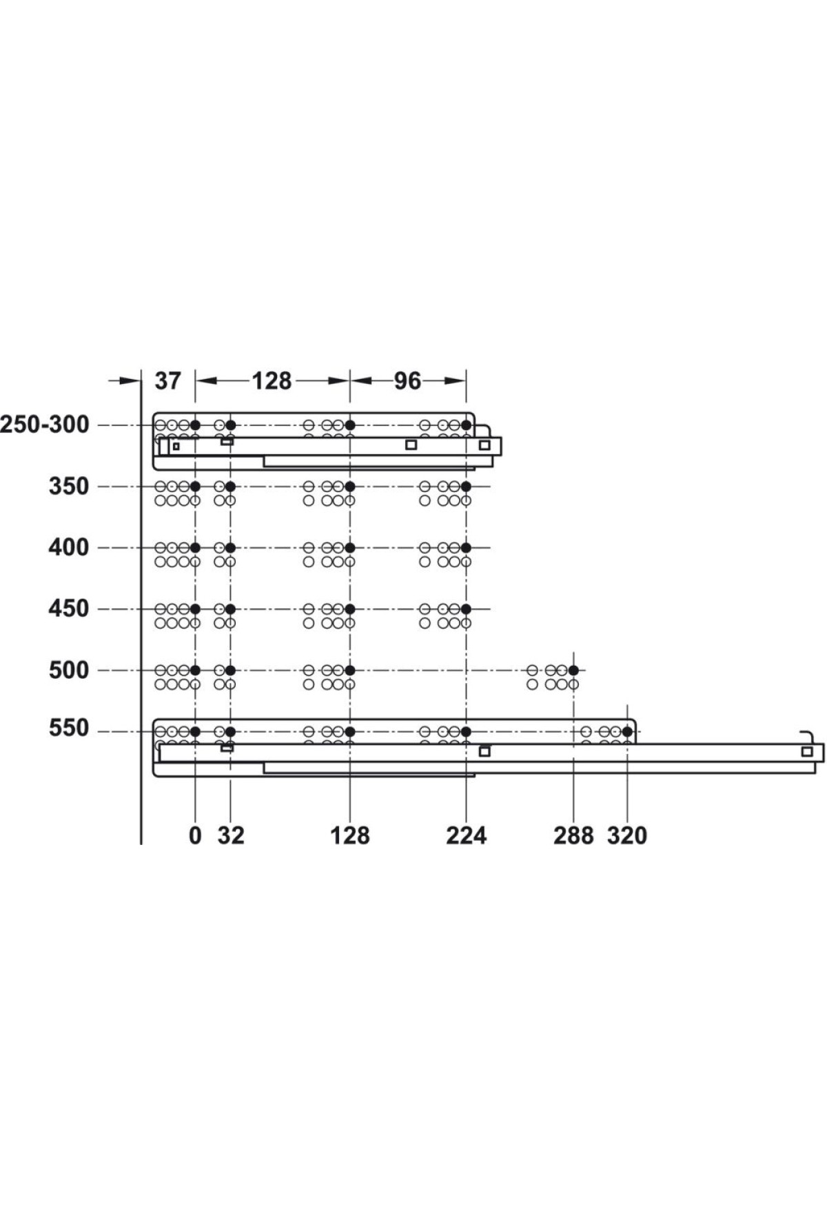 Технические характеристики Комплект направляющих для выдвижных ящиков Matrix Box 500мм 433.03.186 Hafele