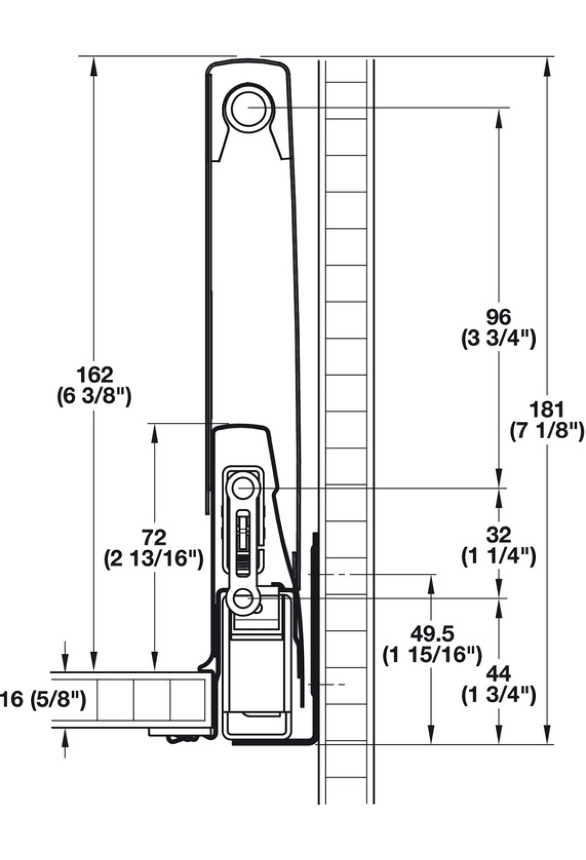 или до 162мм при защелкивании на боковине высотой 92мм.