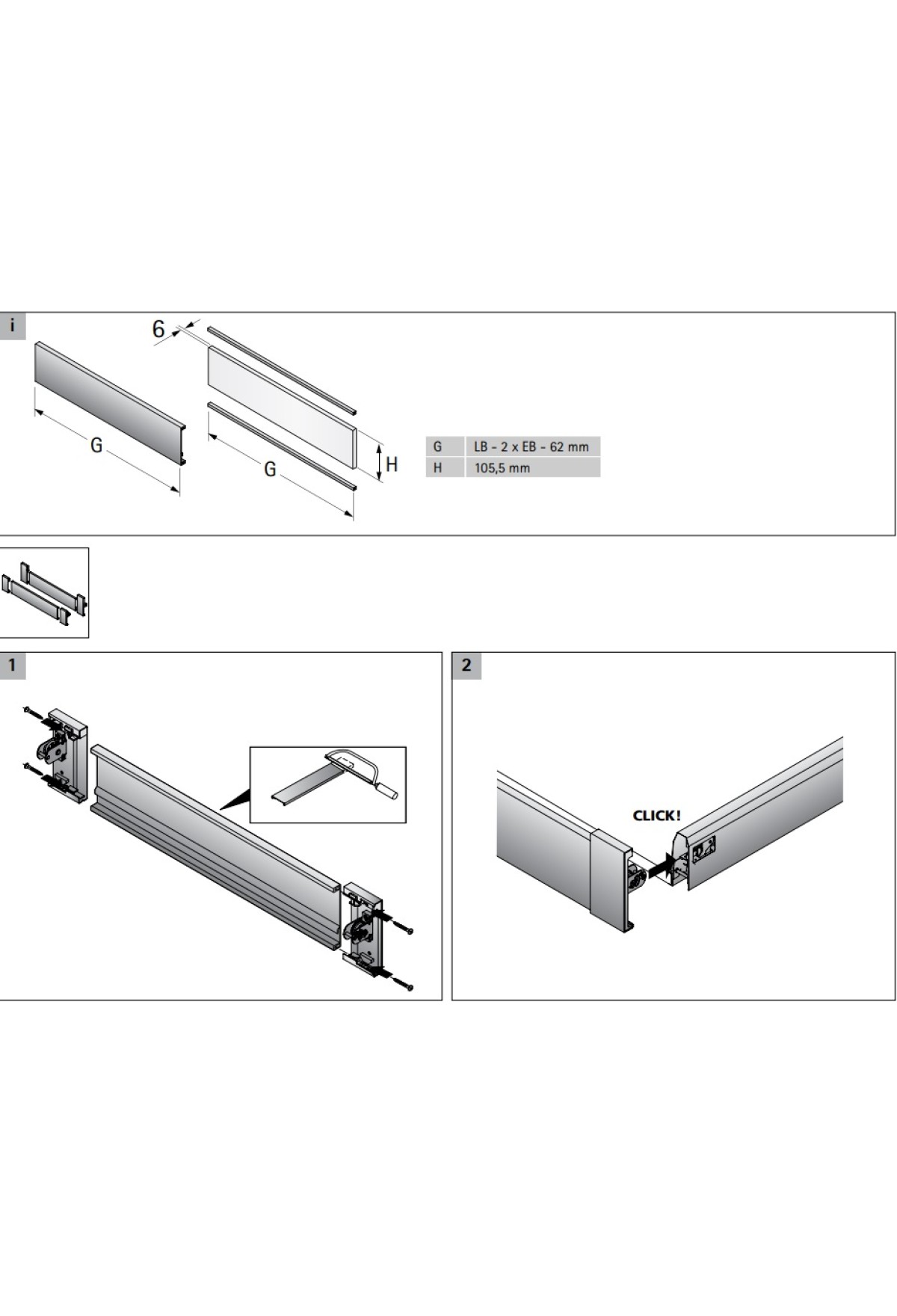 Передняя панель внутреннего ящика ArciTech 2000мм алюминий 9192204 Hettich