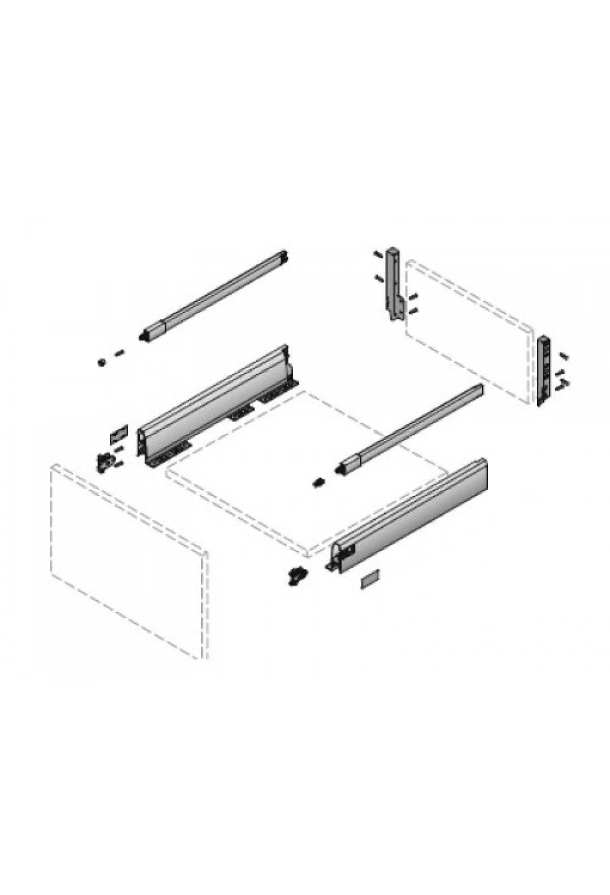 - Выдвижной ящик ArciTech с релингом 218/94*500мм,БЕЗ направляющих серебристый 9150724 Hettich