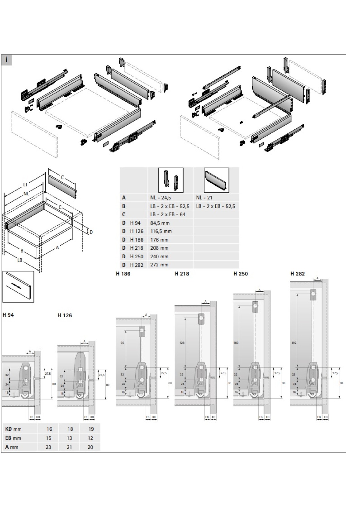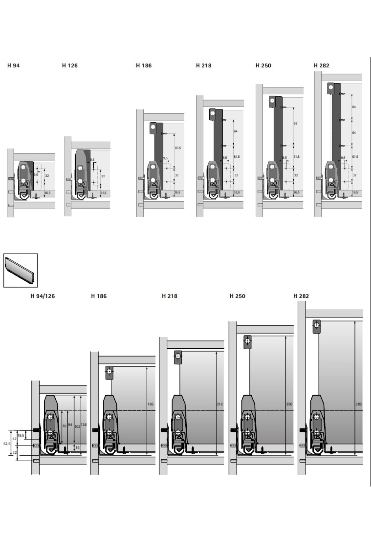 Выдвижной ящик ArciTech с релингом 250/94*500мм, БЕЗ направляющих серебристый 9150745 Hettich