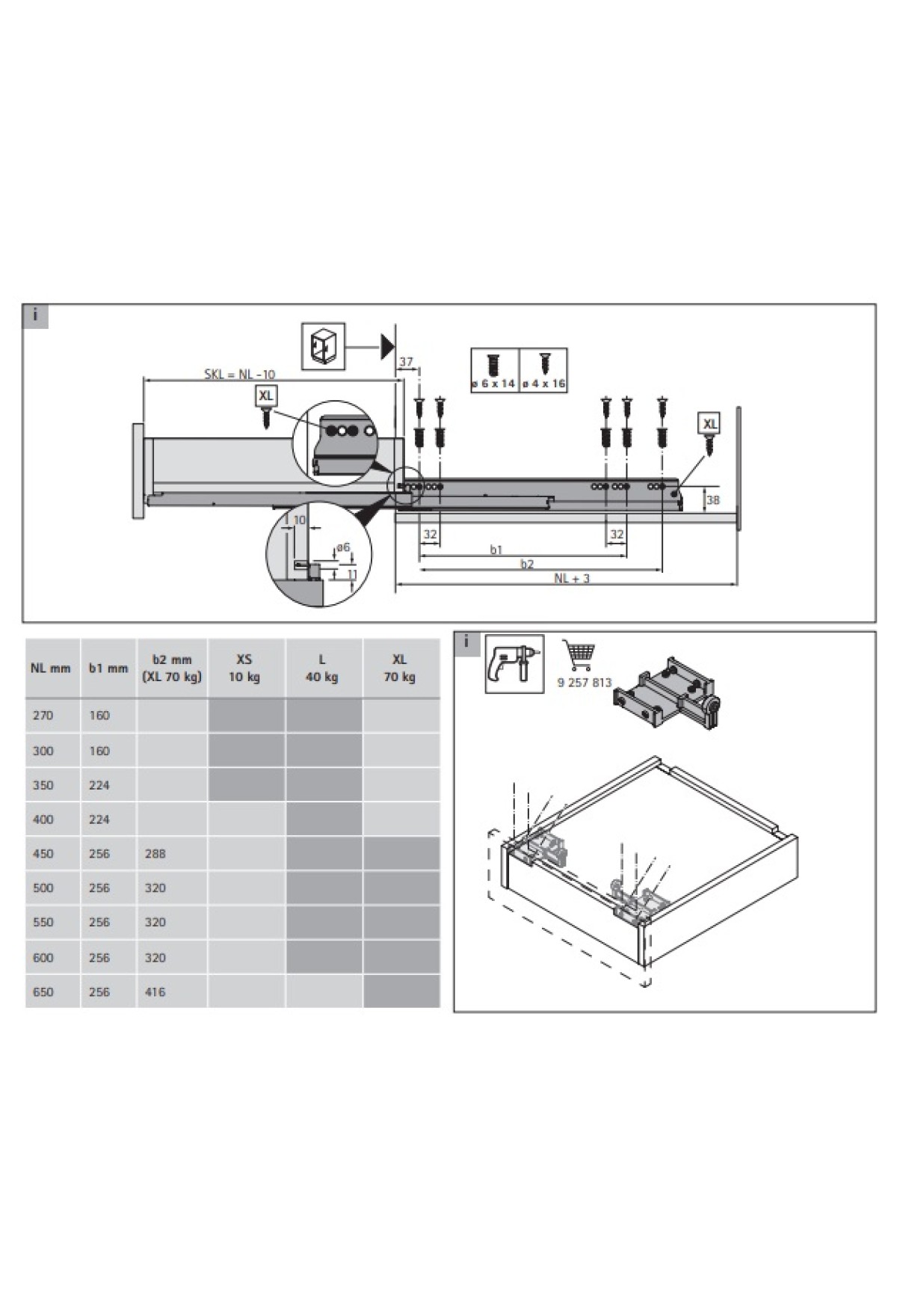 -Направляющие полного выдвижения для применения с системой выдвижных ящиков AvanTech YOU или с деревянными ящиками с фиксаторами
