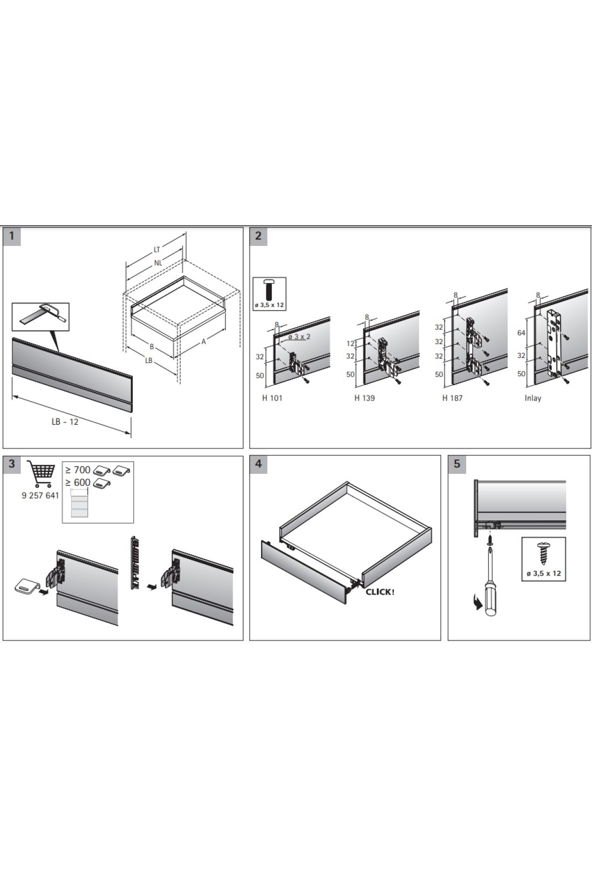 • 2 соединителя передней панели для боковины ящика, левый и правый