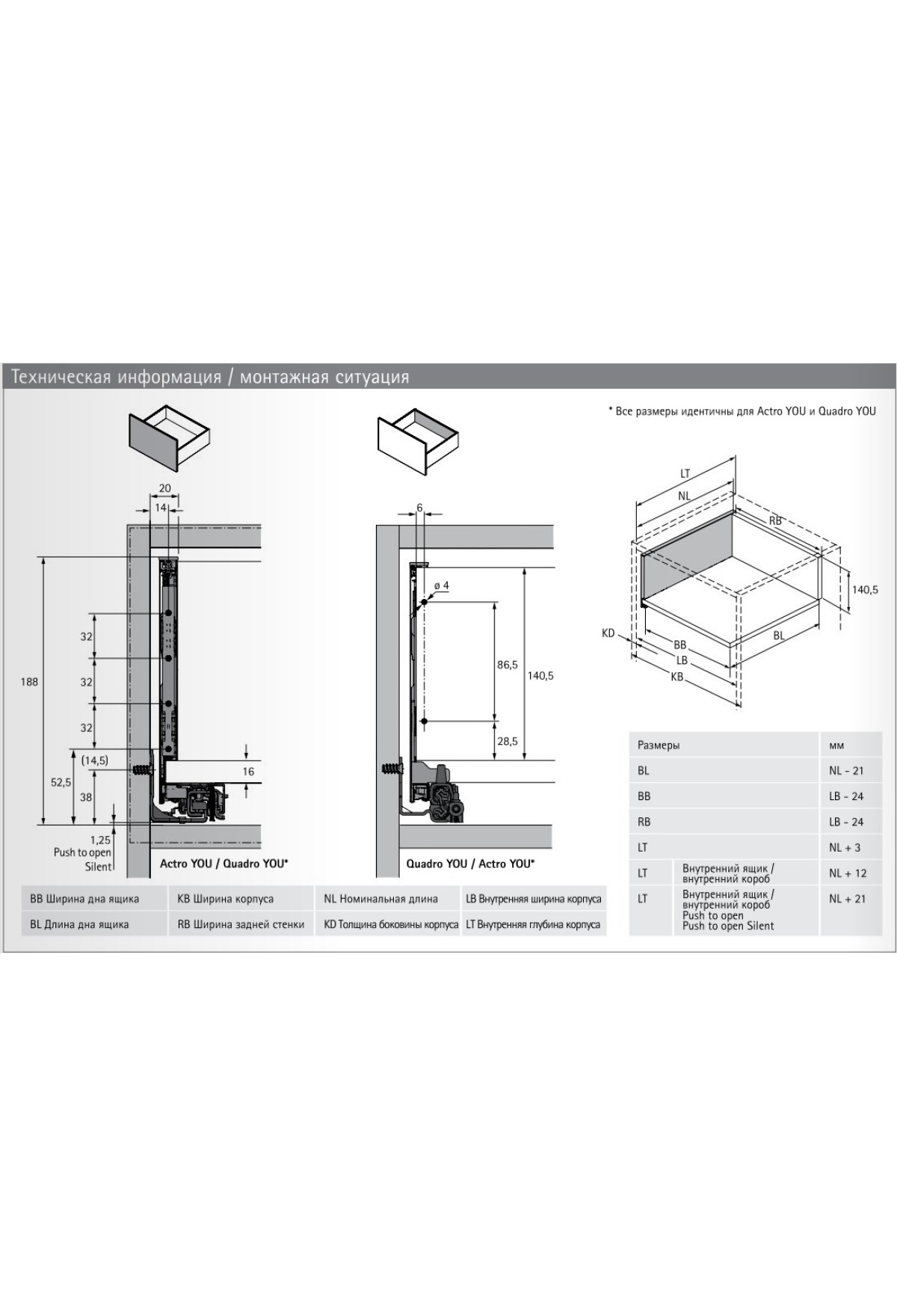 Комплект фурнитуры ящика HETTICH AvanTech You БЕЗ направляющих