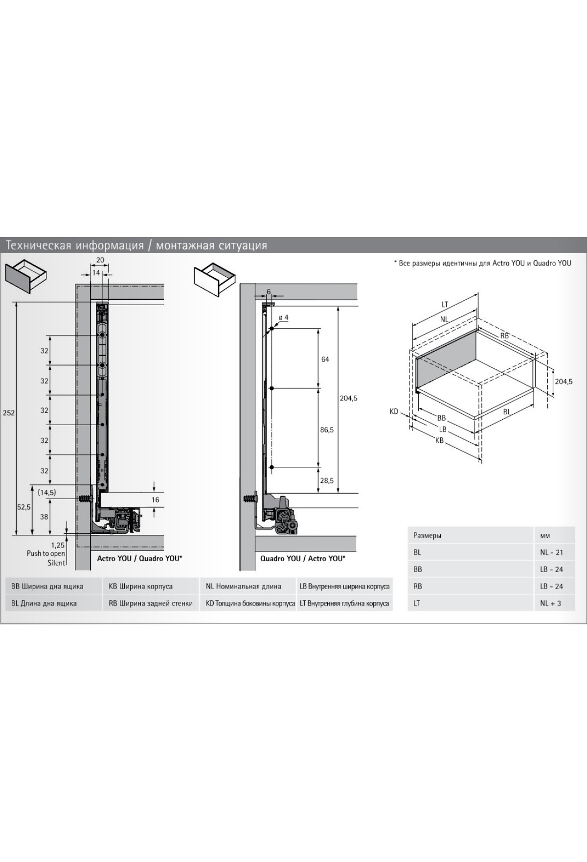 Комплект фурнитуры ящика HETTICH AvanTech You БЕЗ направляющих