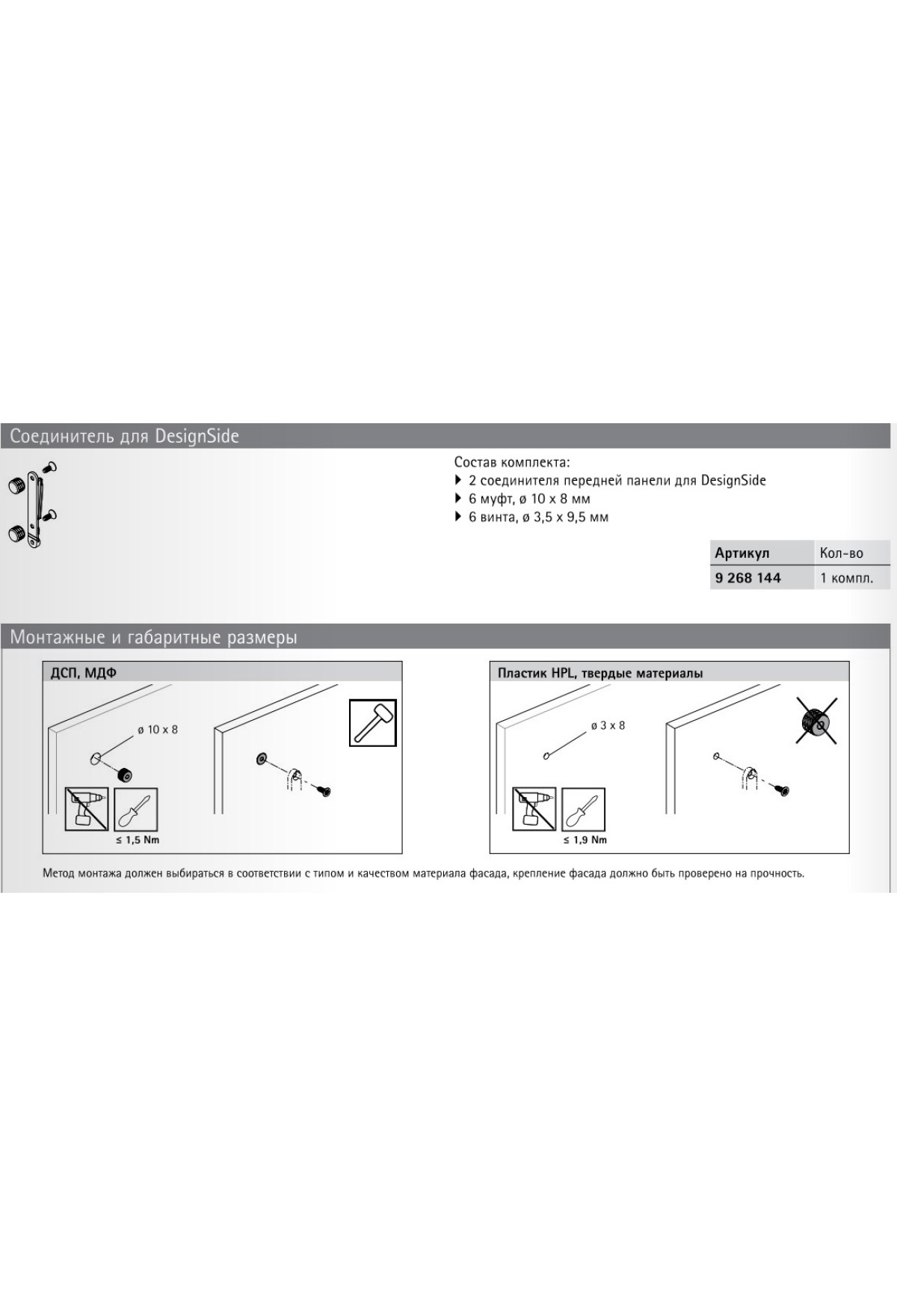 Соединитель передней панели для боковин DesignSide под прикручивание