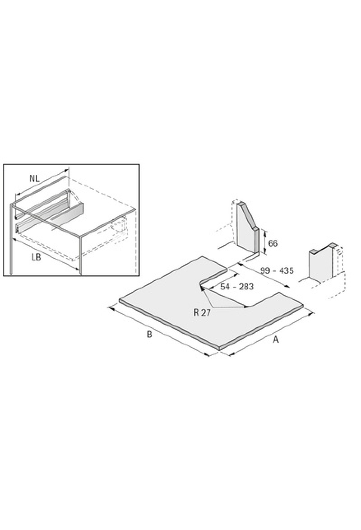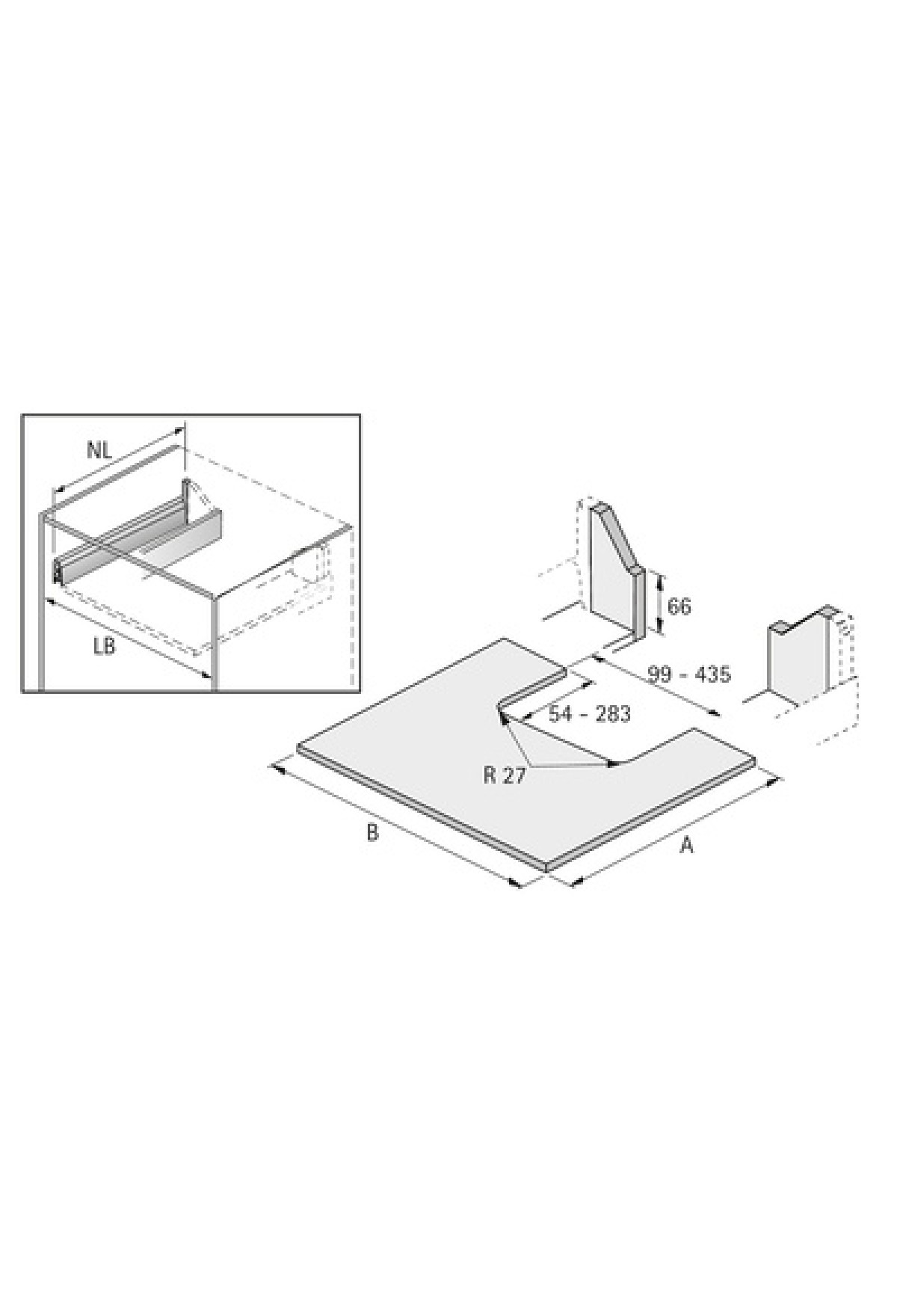 Для выдвижного ящика или короба с вырезом под U-образный изгиб