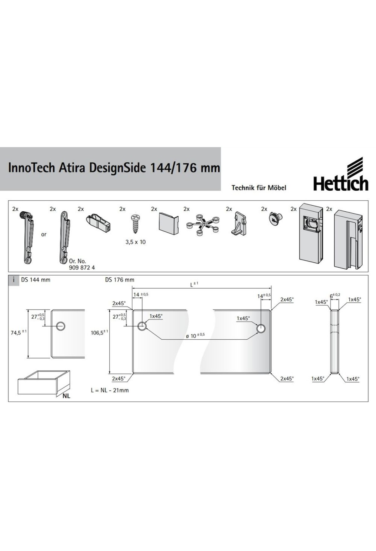 Комплект адаптеров DesignSide 144мм для ящиков InnoTech Atira белый 9196318 Hettich