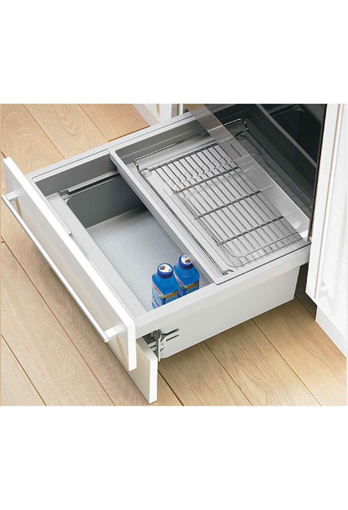 Выдвижной короб XXL (ящик под цоколь, ящик под духовку) предназначен для полезного использования места на уровне цоколя под духовкой, имеет влагозащитную пластмассовую ванну для хранения больших и громоздких предметов и передвижной лоток для мелочей. Встроенный механизм подъема цоколя обеспечивает аккуратный внешний вид и плавный ход, защищая пол от царапин или следов.