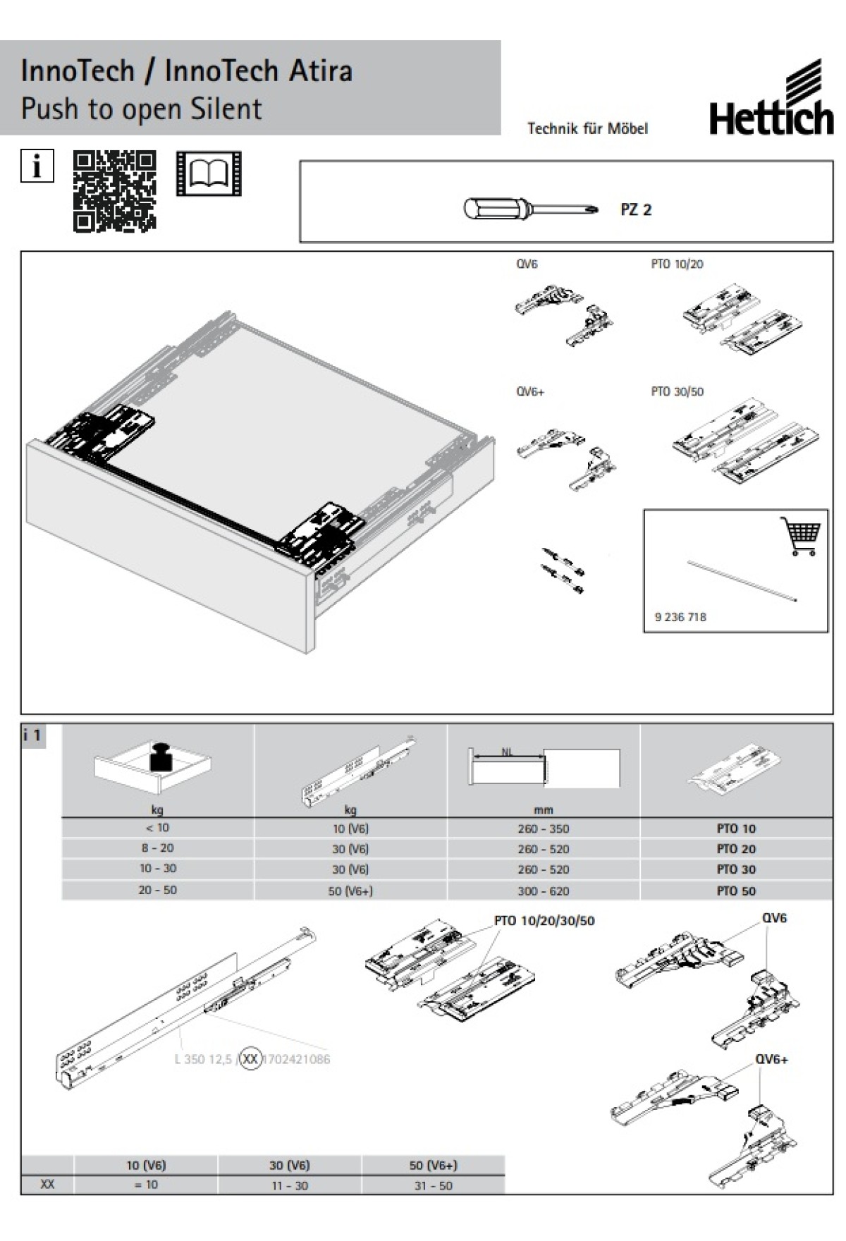 - Механизм открывания Push to open Silent на 20кг для Innotech Atira 9240162 Hettich