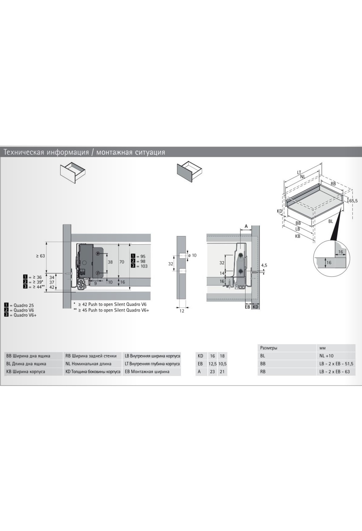 • 2 направляющие Quadro полного выдвижения с демпфером Silent System, левая и правая
