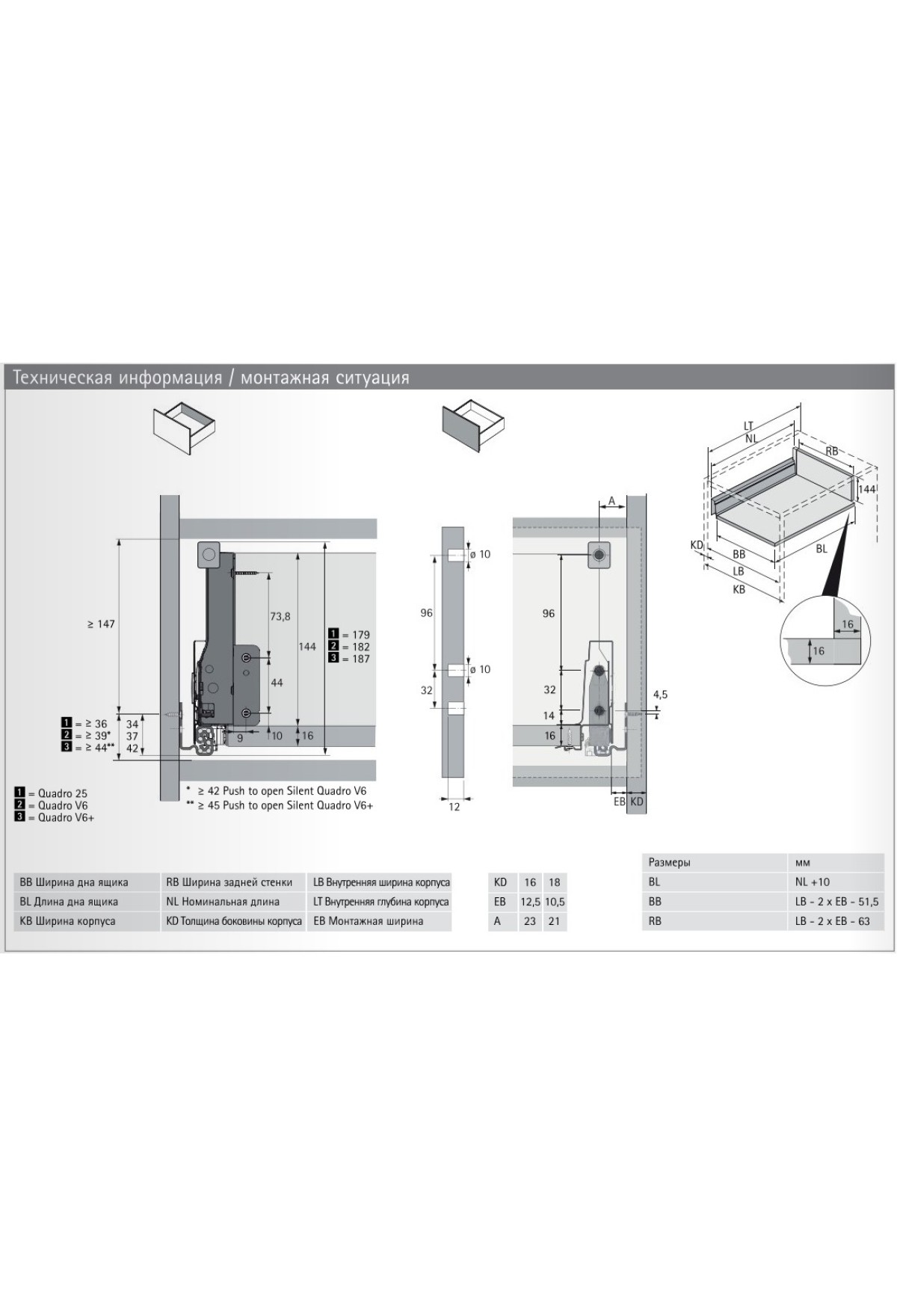 • 2 направляющие Quadro полного выдвижения с демпфером Silent System, левая и правая