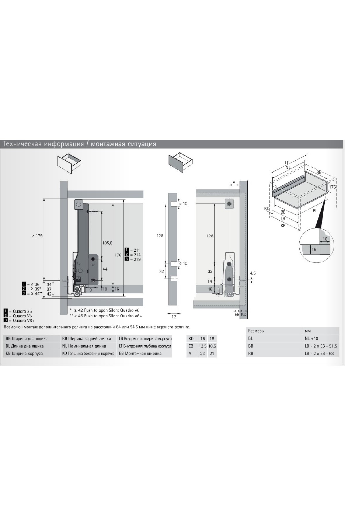 • 2 направляющие Quadro полного выдвижения с механизмом Push to open, левая и правая