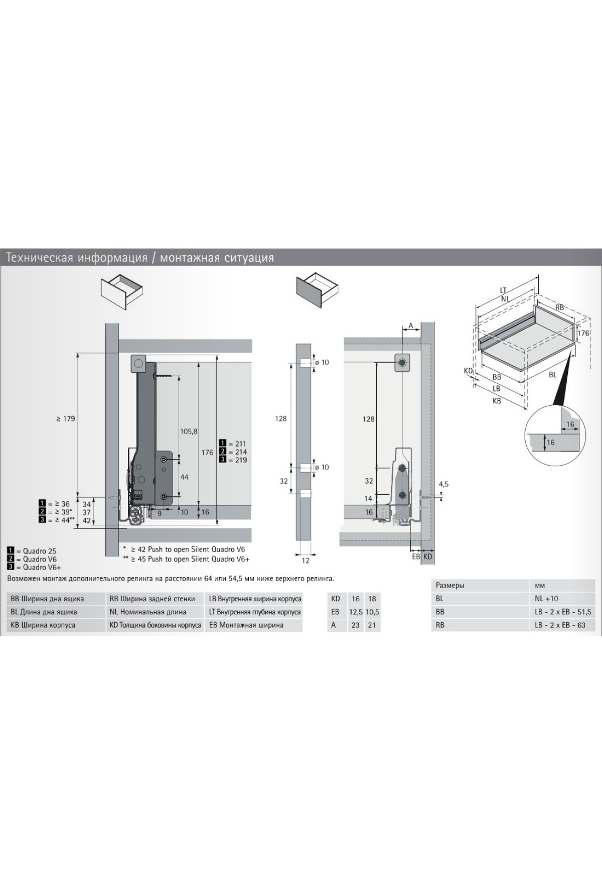 • 2 направляющие Quadro полного выдвижения с механизмом Push to open, левая и правая