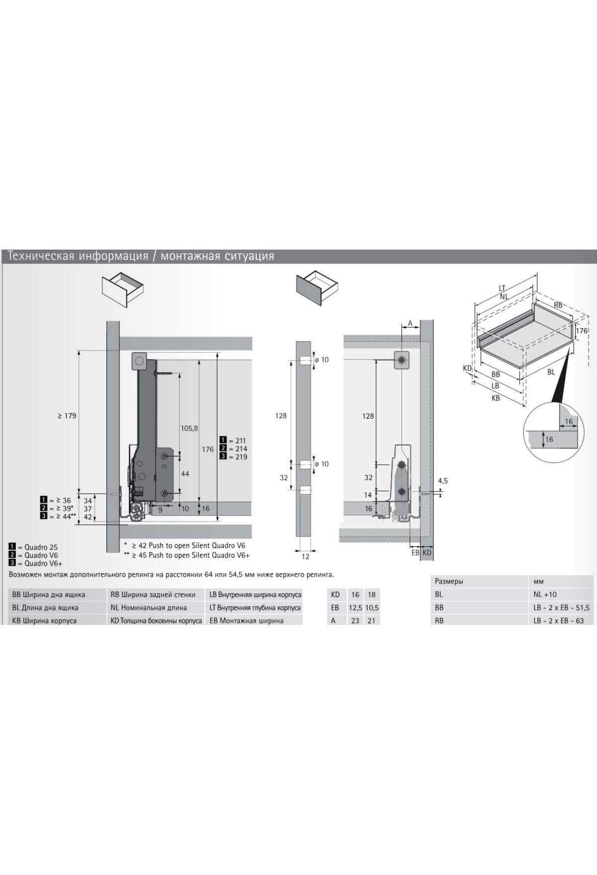 • 2 направляющие Quadro полного выдвижения с демпфером Silent System, левая и правая
