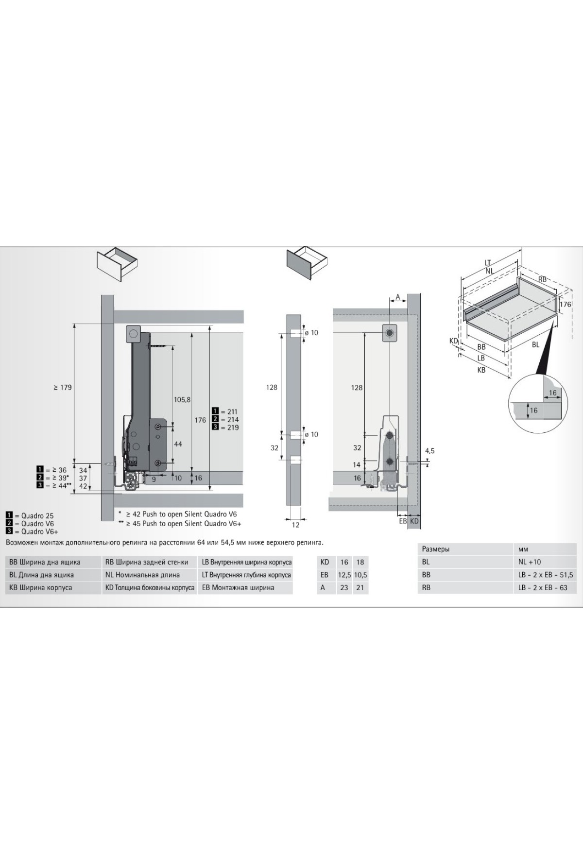 • 2 направляющие Quadro полного выдвижения с механизмом Push to open, левая и правая