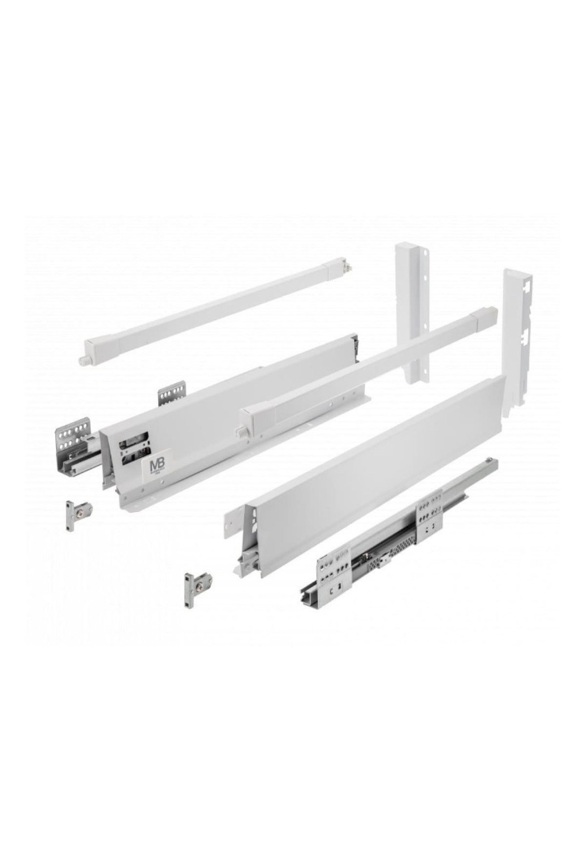 Модерн Бокс PRO L-350, высокий H-199 мм, белый - мебельная система выдвижения, представляющая собой набор из направляющих, боковых стенок и рейлингов, для сборки выкатного ящика. Модерн Бокс в первую очередь предназначен для кухонных гарнитуров, но также может быть использован в мебельных конструкциях другого назначения, где конструктивно предусмотрены выдвижные ящики.