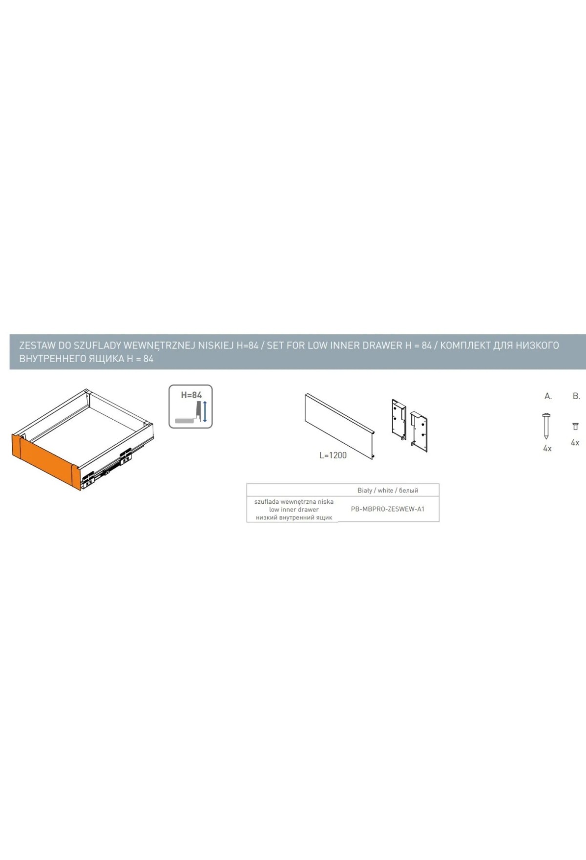 Комплект для низкого внутреннего ящика Modern Box PRO (панель Н-84 мм + крепление), белый - набор для сборки выкатного короба, размещаемого внутри корпуса, который закрывает общий фасад в системе выдвижения Модерн Бокс Про.
