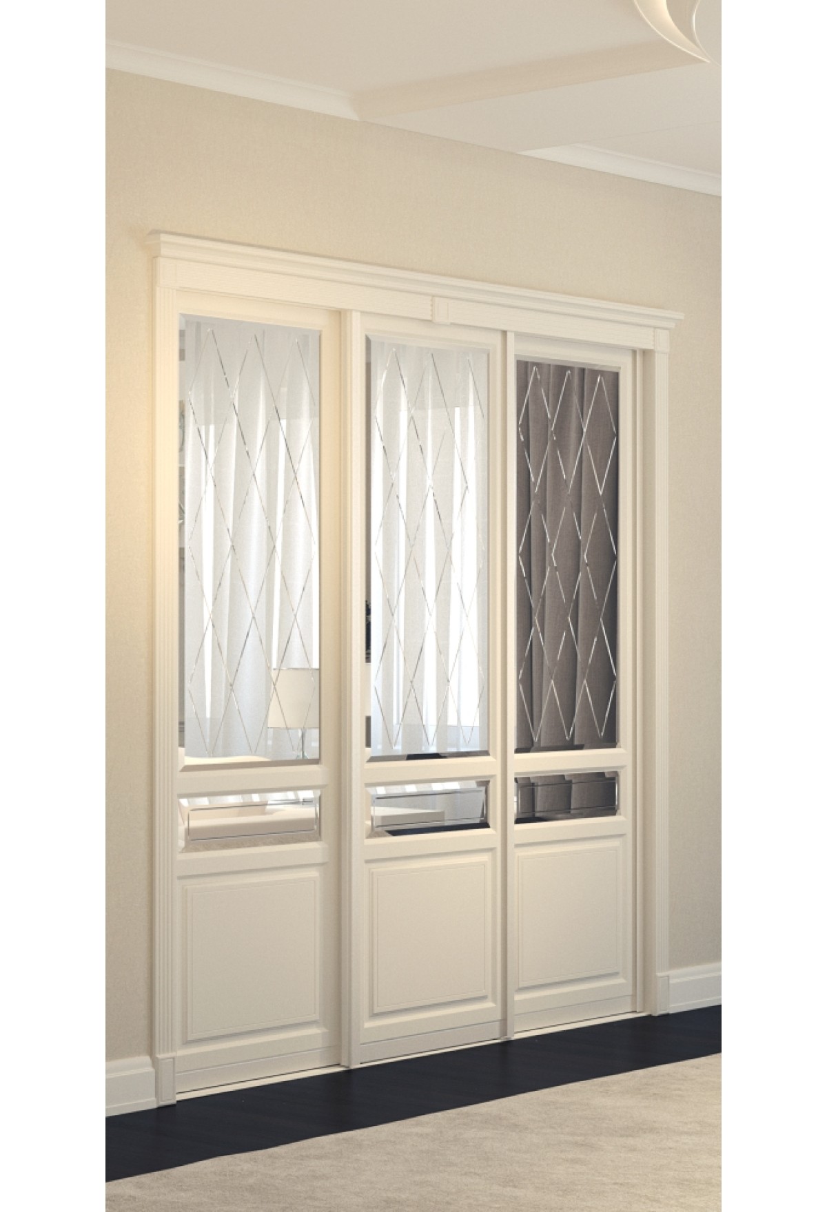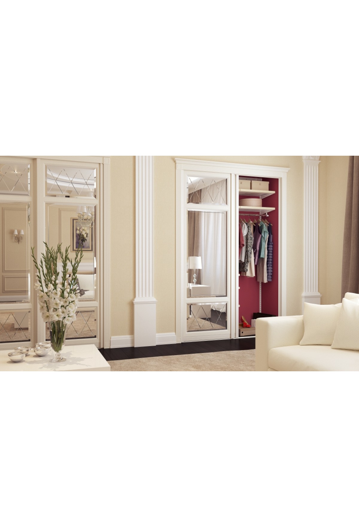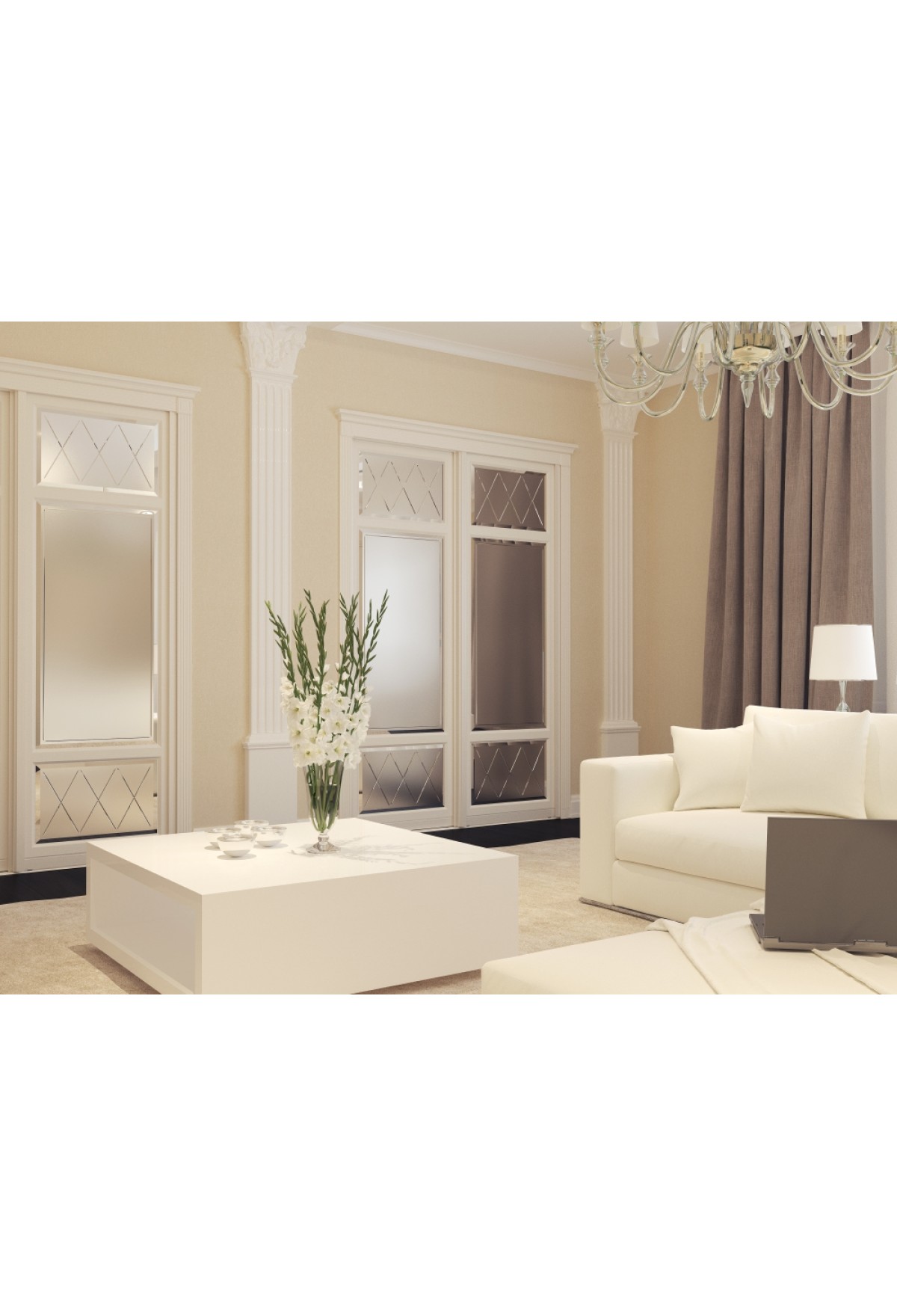 Ромбы на зеркалах, выполненные техникой полированной алмазной гравировки, делают классическую дверь легкой и воздушной.