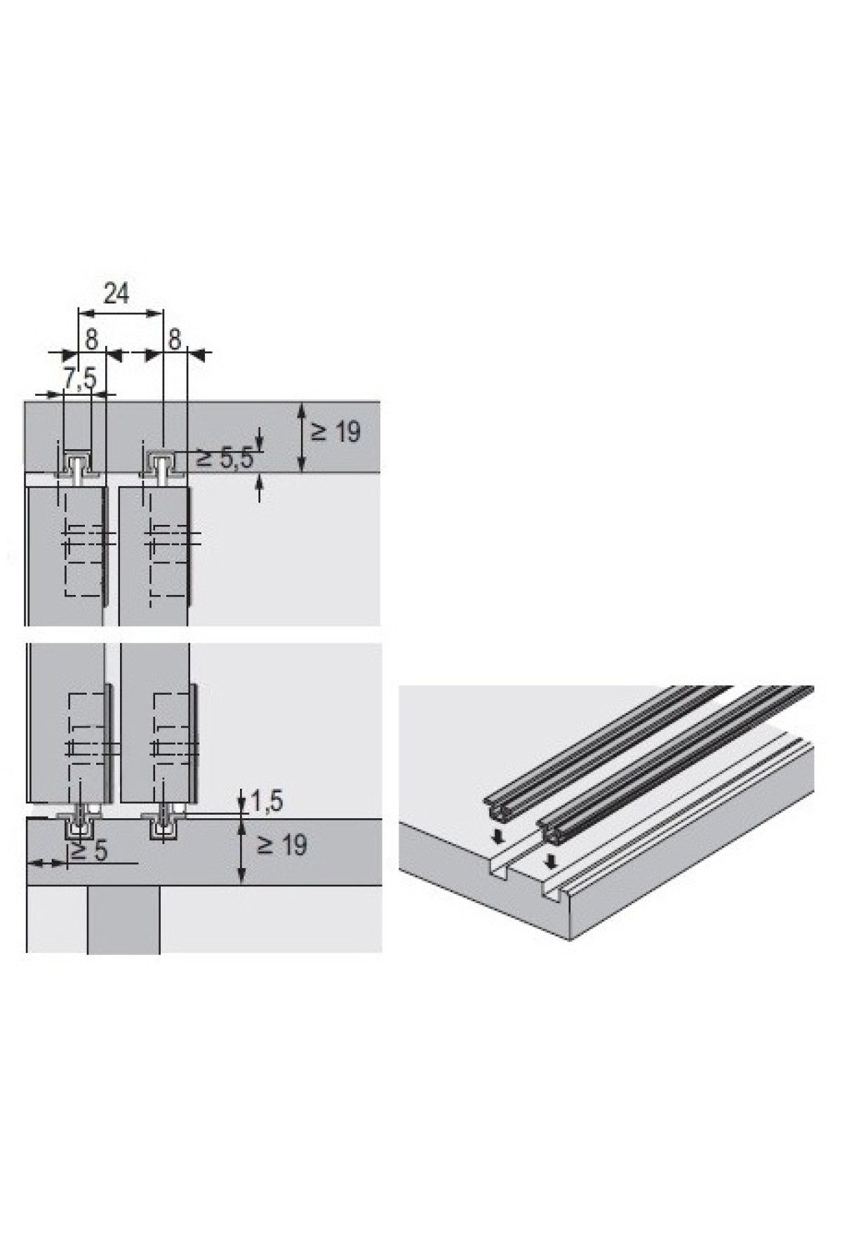 Для каждой двери требуется своя направляющая сверху и снизу