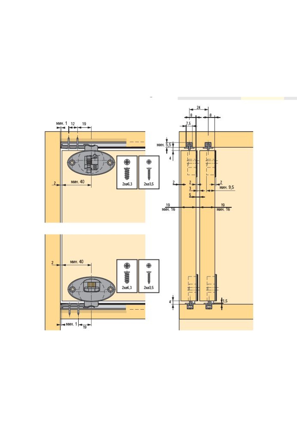 Для каждой двери требуется своя направляющая сверху и снизу