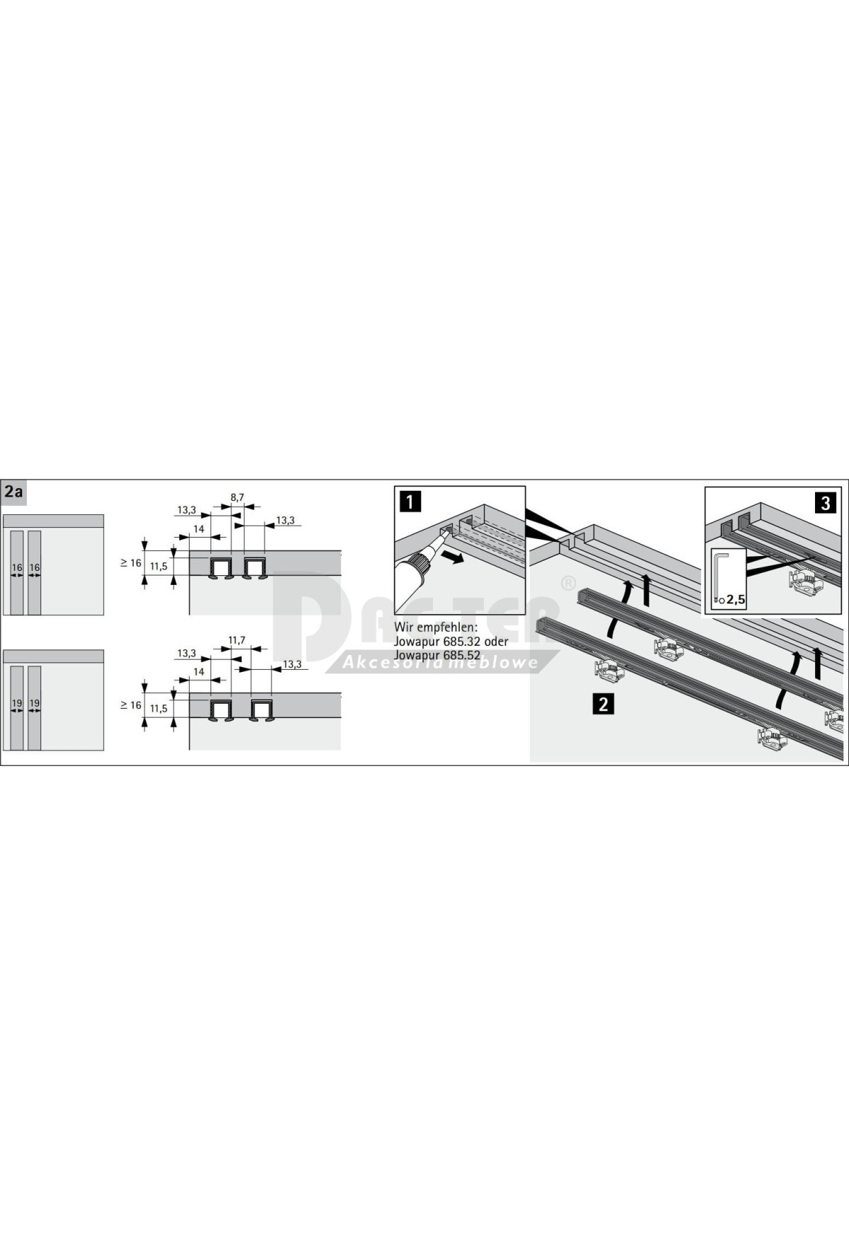 Ходовой профиль SysLine S 2000мм под приклеивание 9145851 Hettich