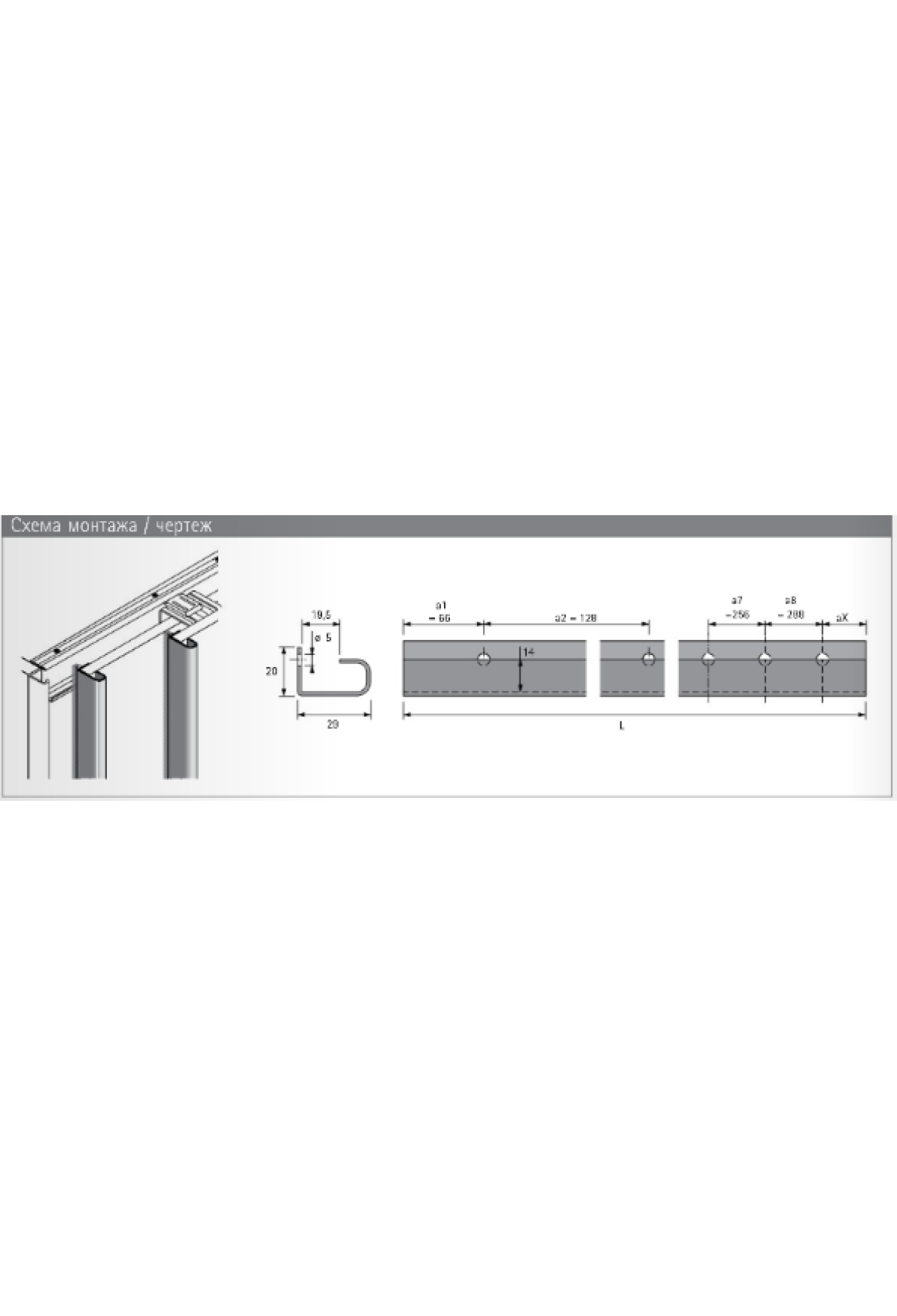 Хеттих/Top Line* ручка-профиль, толщина двери 18-19мм, длина 2500мм, серебристая сталь/9209756