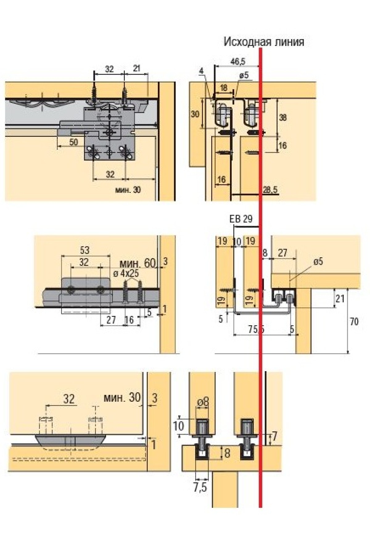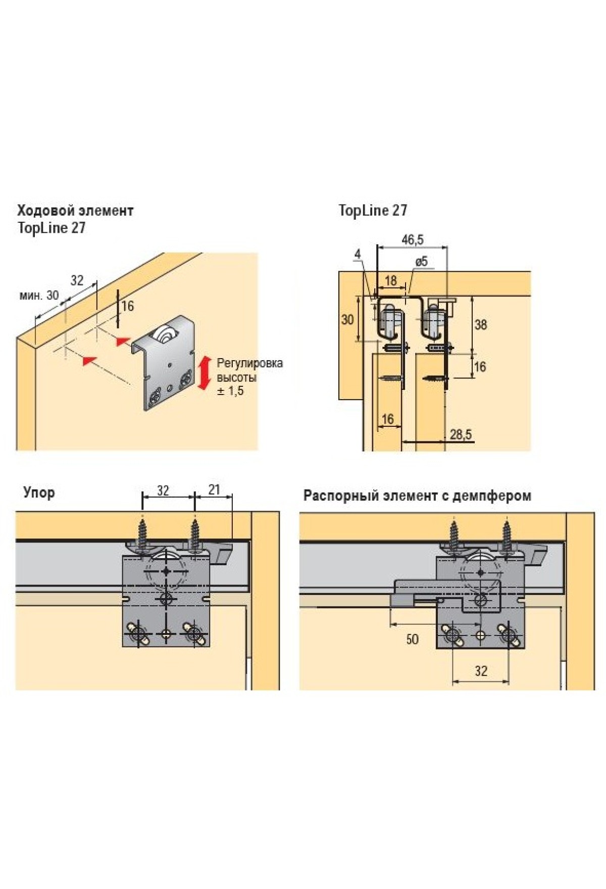 Ходовой элемент снабжен отверстием под удерживающий винт, который предотвращает непроизвольное поднятие двери.