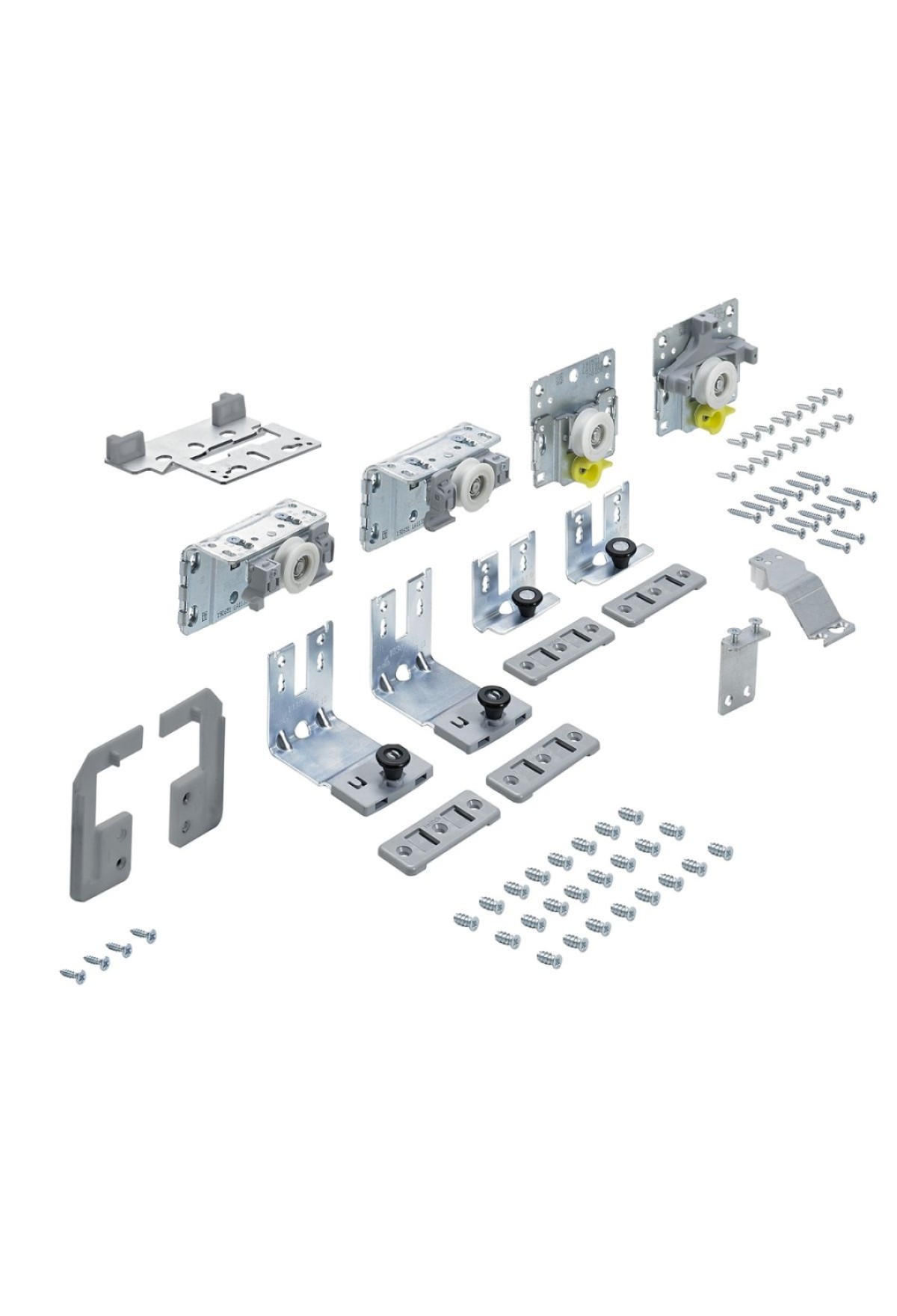 • В комплект входят ходовые и направляющие элементы, а также комплект крепежа для шкафов с 2 дверями